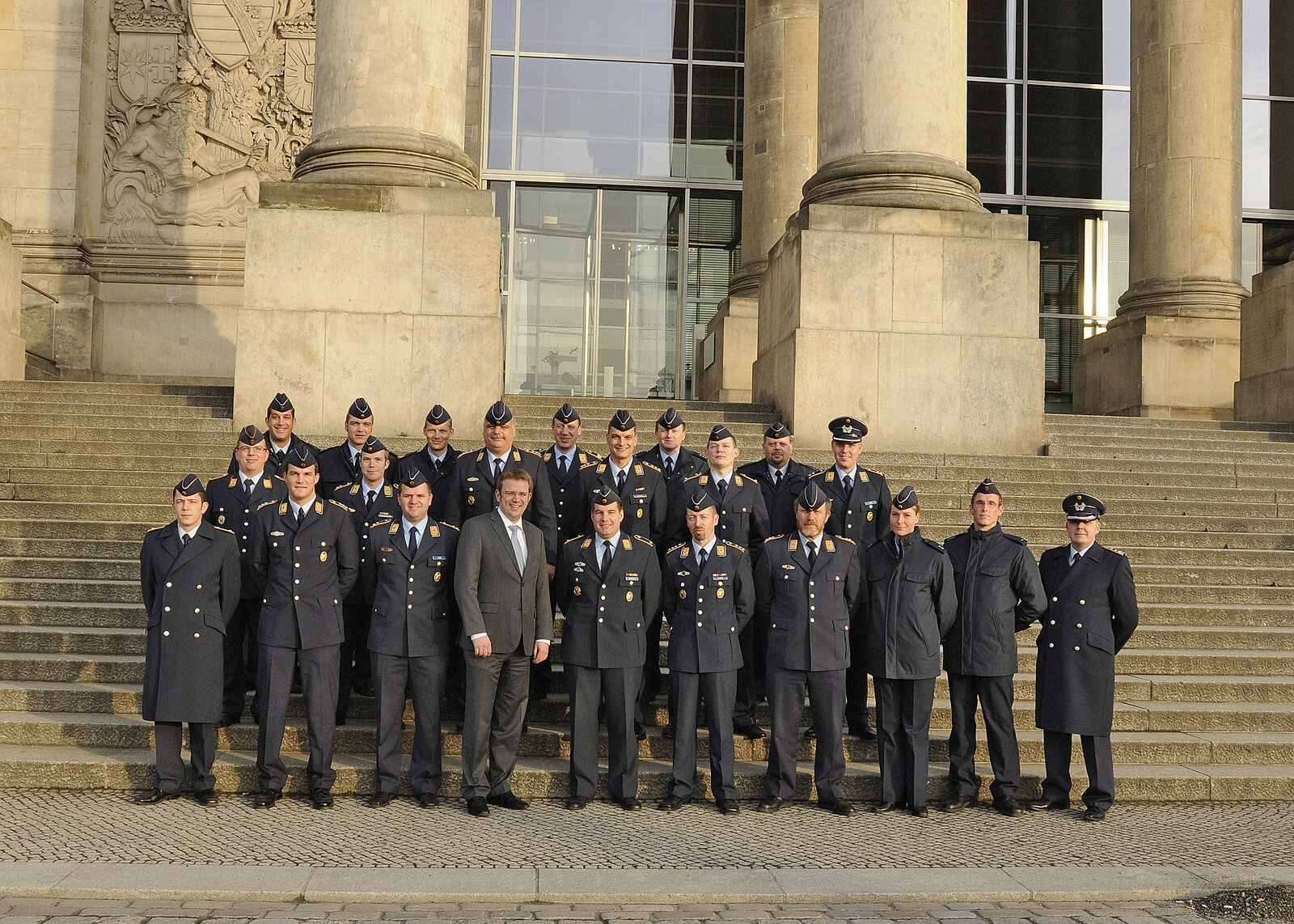 21 Offiziere der Fluabwehrraketengruppe 23 aus Oberstimm waren im Rahmen der Weiterbildung zu Gast in Berlin. Von der Besuchertribüne des Plenarsaales aus konnten sie eine Sitzung des Deutschen Bundestages verfolgen. Anschließend stand ein Gespräch mit MdB Dr. Reinhard Brandl auf dem Programm. Der Abgeordnete begrüßte die Offiziere herzlich in der Hauptstadt und stellte sich gerne den Fragen der Soldatinnen und Soldaten. Hauptgesprächsthema war die Reform der Bundeswehr. Leutnant Tietze bedankte sich beim Abgeordneten für das informative Gespräch.