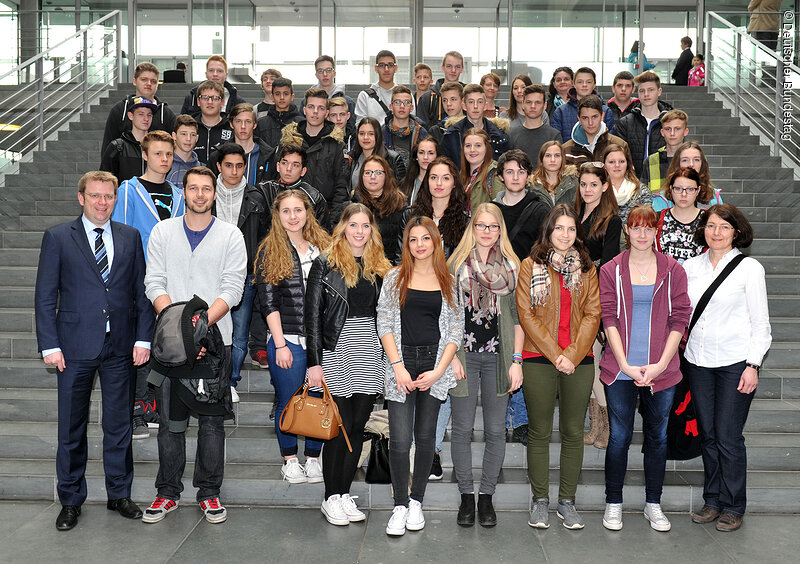 Anlässlich ihrer Berlin-Reise besuchten die Schülerinnen und Schüler der Mittelschule Gaimersheim ihren Heimatabgeordneten Dr. Reinhard Brandl an seinem Arbeitsplatz. R. Brandl begrüßte die Gäste herzlich im Paul-Löbe-Haus. In diesem Gebäude befinet sich auch das Büro des Abgeordneten sowie die Sitzungssäle der Ausschüsse. Reinhard Brandl nahm sich eine Stunde Zeit und diskutierte mit der Gruppe über aktuelle politische Themen. Gerne stand er im Anschluss noch für ein Erinnerungsfoto auf der Treppe des Paul-Löbe-Hauses zur Verfügung und wünschte den jungen Gäste noch spannende Tage in der Hauptstadt.