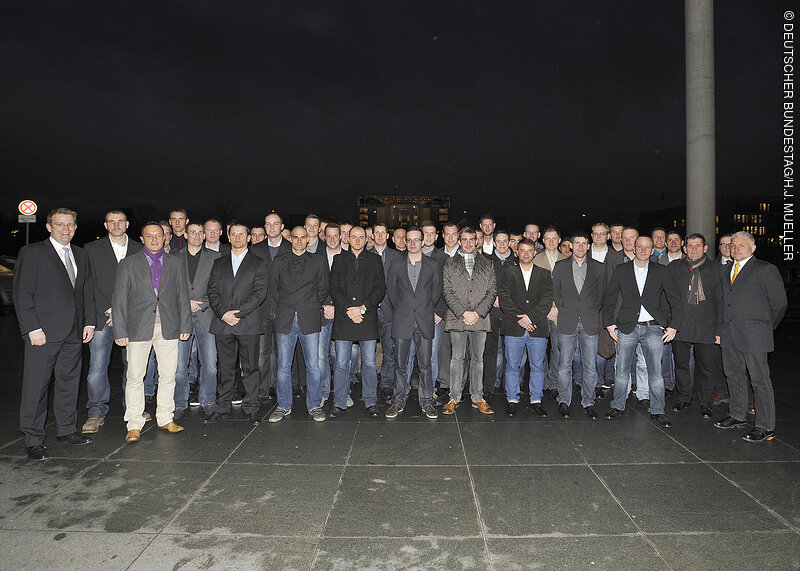 46 Offiziere der Pionierschule Ingolstadt besuchten das politische Berlin. Nach einem Vortrag auf der Besuchertribüne des Plenarsaales stand eine Diksussion mit MdB Dr. Reinhard Brandl auf dem Programm. Die jungen Offiziere nutzten die Gelegenheit zur Information aus erster Hand. Als Mitglied des Verteidigungsauschusses hatte die Gruppe mit Reinhard Brandl einen kompetenten Gesprächspartner. Gerne stand der Abgeordnete noch für ein Erinnerungsfoto zur Verfügung.