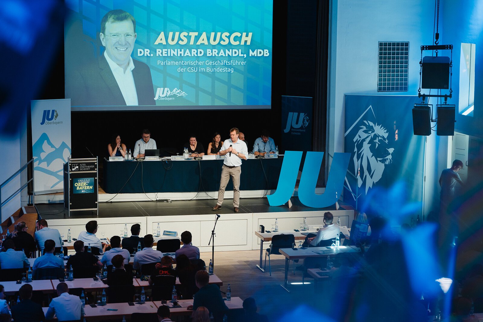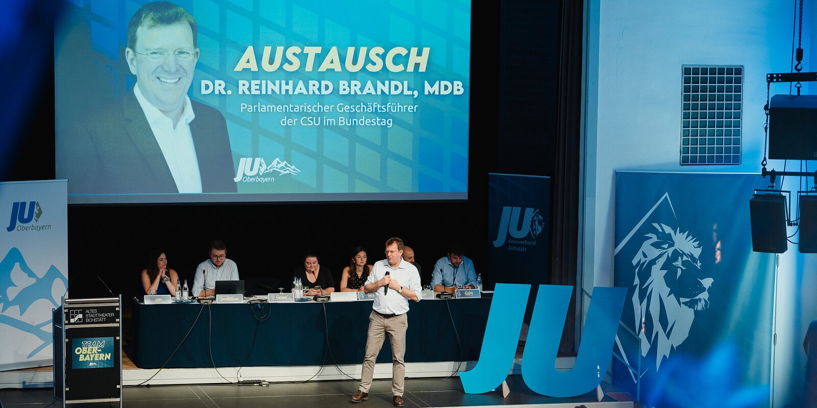 Der JU Kreisverband Eichstätt war Gastgeber und Organisator der diesjährigen Bezirksversammlung im Alten Stadttheater. Neben Landtagspräsidentin Ilse Aigner war auch Reinhard Brandl als Redner zu Gast. Getreu dem Motto "Einmal JU - immer JU" ist er der Einladung selbstverständlich sehr gerne gefolgt.