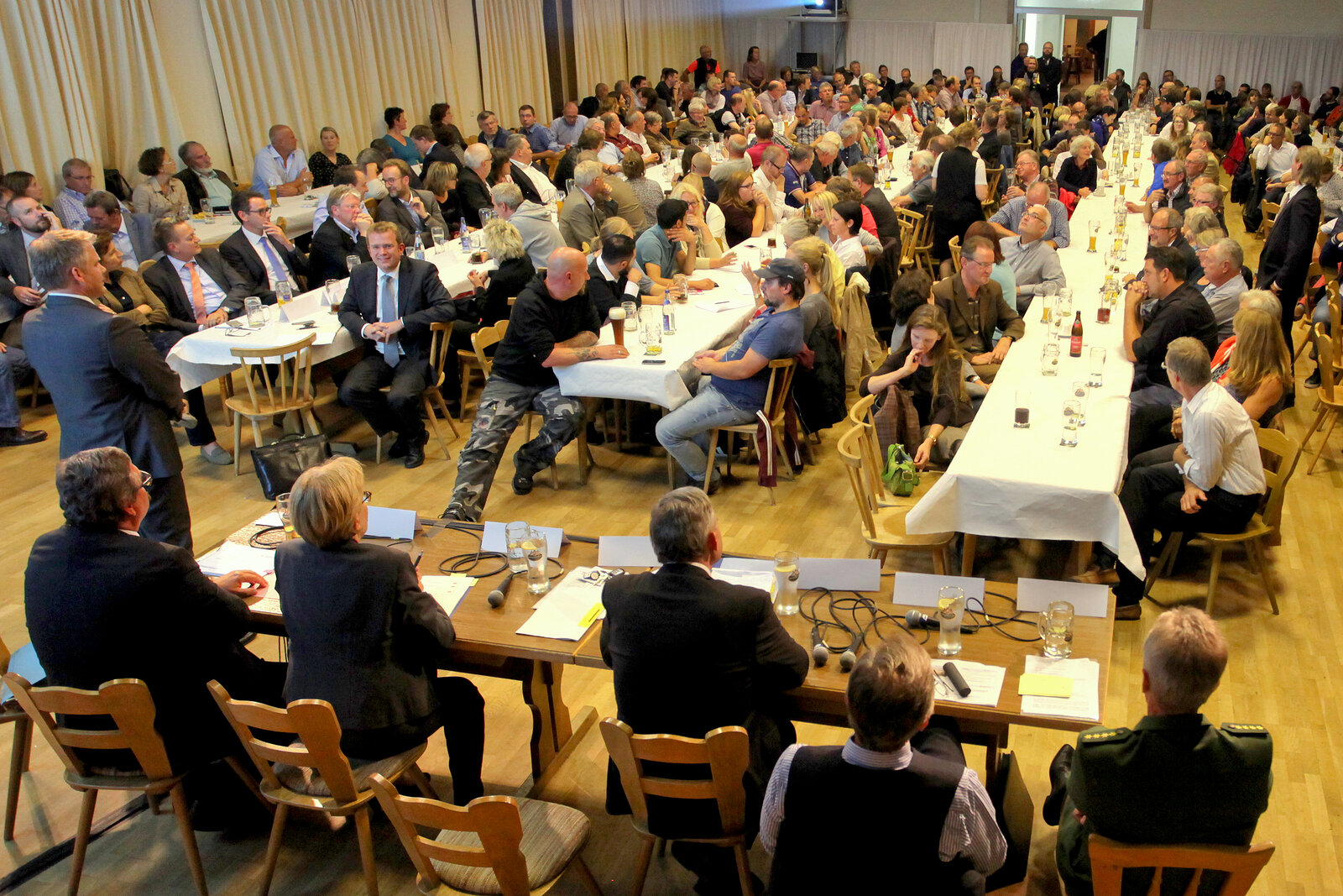 Zu einer Informationsveranstaltung hatte die Stadt Ingolstadt die Bürgerinnen und Bürger von Zuchering eingeladen. Zum Thema Asyl nutzten einige Hundert Gäste die Möglichkeit zur Information aus erster Hand. Neben Oberbürgermeister Dr. Christian Lösel waren auch der Vizepräsident des Bundesamtes für Migration und Flüchtlinge, Herr Michael Griesbeck, die Vizepräsidentin der Regierung von Oberbayern, Frau Maria Els sowie die Referenten der Stadt Ingolstadt und MdB Dr. Reinhard Brandl gekommen, um den Bürgern über das neue Balkan-Zentrum in der Max-Immelmann-Kaserne und weitere drängende Fragen zu sprechen.