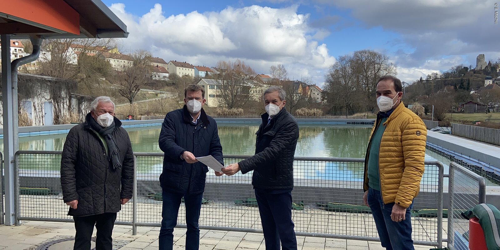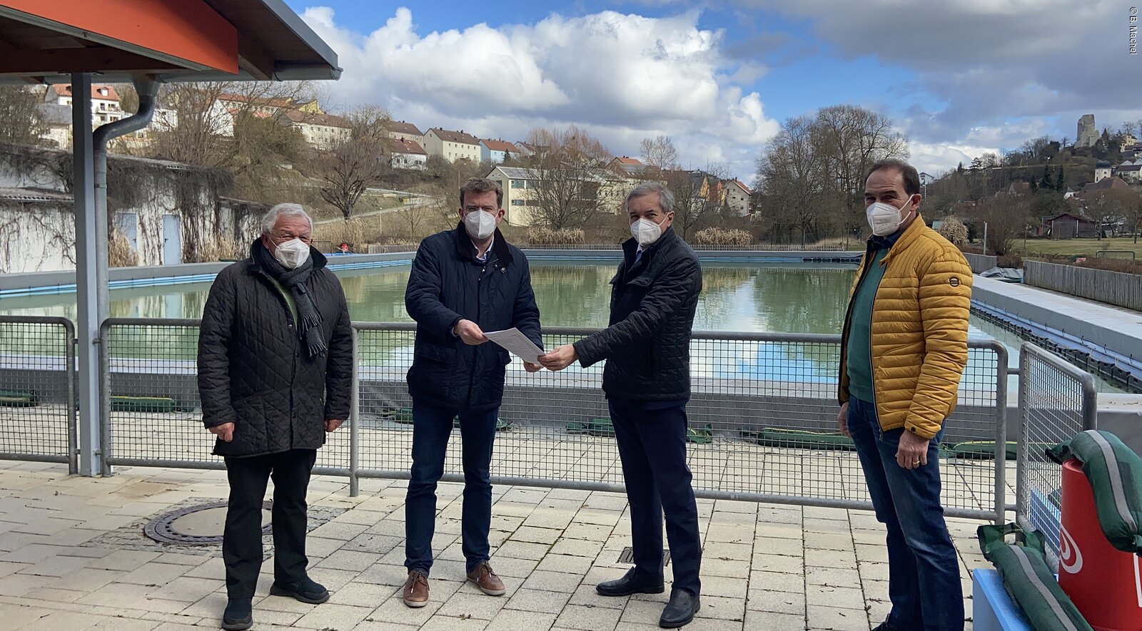 Gute Nachrichten und eine schöne Förderliste an Projekten hatte Reinhard Brandl beim Besuch in Altmannstein im Gepäck: Im Rahmen eines Bundesprogramms wird die Sanierung des Freibads in Altmannstein mit 1,4 Millionen Euro gefördert. Hierbei geht es dem Abgeordneten nicht nur um den Erhalt von Altmannsteins größter Naherholungseinrichtung, sondern konkret um die Sicherheit von Leib und Leben: "Kinder müssen vor Ort Schwimmen lernen können!", so Reinhard Brandl. Die Schulen im Umkreis profitieren hierbei von der Zusammenarbeit mit der Marktgemeinde.