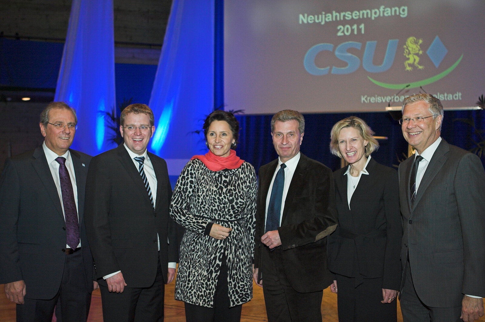 Der traditionelle Neujahrsempfang des CSU-Kreisverbandes Ingolstadt war auch in diesem Jahr wieder ein Stelldichein von Vertretern der Wirtschaft, des Handels, der Politik und vor allem der großen CSU-Familie im Festsaal des Theaters Ingolstadt. Für über 1.000 Zuhörer waren die Ausführungen des Festredners, EU-Kommissar Günther Oettinger, ein echter Ohrenschmaus. Er zeigte in seiner Rede sehr eindruckvoll die Probleme der Weltwirtschaft auf und machte deutlich, dass nur eine starke Europäische Union hier auf Dauer bestehen kann. Neben MdB Dr. Reinhard Brandl standen auch Staatsministerin Christine Haderthauer, die Europaabgeordnete Dr. Angelika Niebler, Oberbürgermeister Dr. Alfred Lehmann und natürlich Kommissar Oettinger den Gästen für Gespräche zur Verfügung.