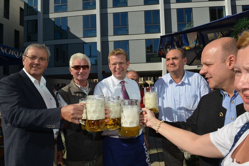 Unter einem strahlend blauen Himmel konnte die CSU Ingolstadt das Sommerfest am Viktualienmarkt feiern. Pünktlich um 10.00 Uhr zapfte MdB Dr. Reinhard Brandl das erste Fass mit nur 4 Schlägen an. Bei bester Stimmung konnten die Gäste unter den Klägen der Siebenbürger-Banater Blasmusik einen herrlichen Tag verbringen. Kreisvorsitzender Hans Süßbauer konnte gegen Mittag auch Staatsministerin Christine Haderthauer begrüßen, die gerne für die Bürgerinnen und Bürger zu ungezwungenen Gesprächen zur Verfügung stand.