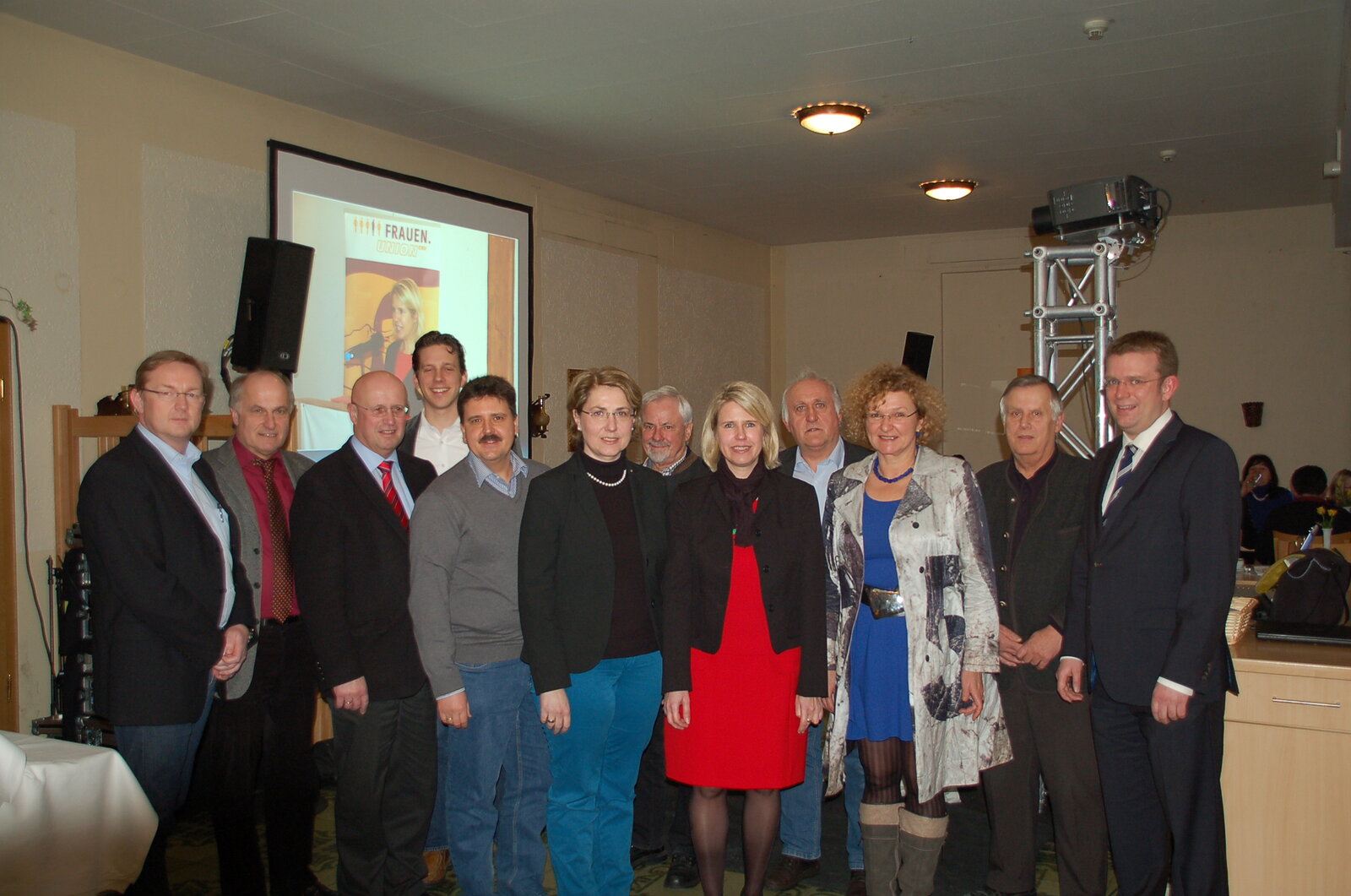 Landrat Anton Knapp, CSU-Kreisvorsiteznde Tanja Schorer-Dremel und MdB Dr. Reinhard Brandl mit Bürgermeisterkandidatin Claudia Forster in Denkendorf