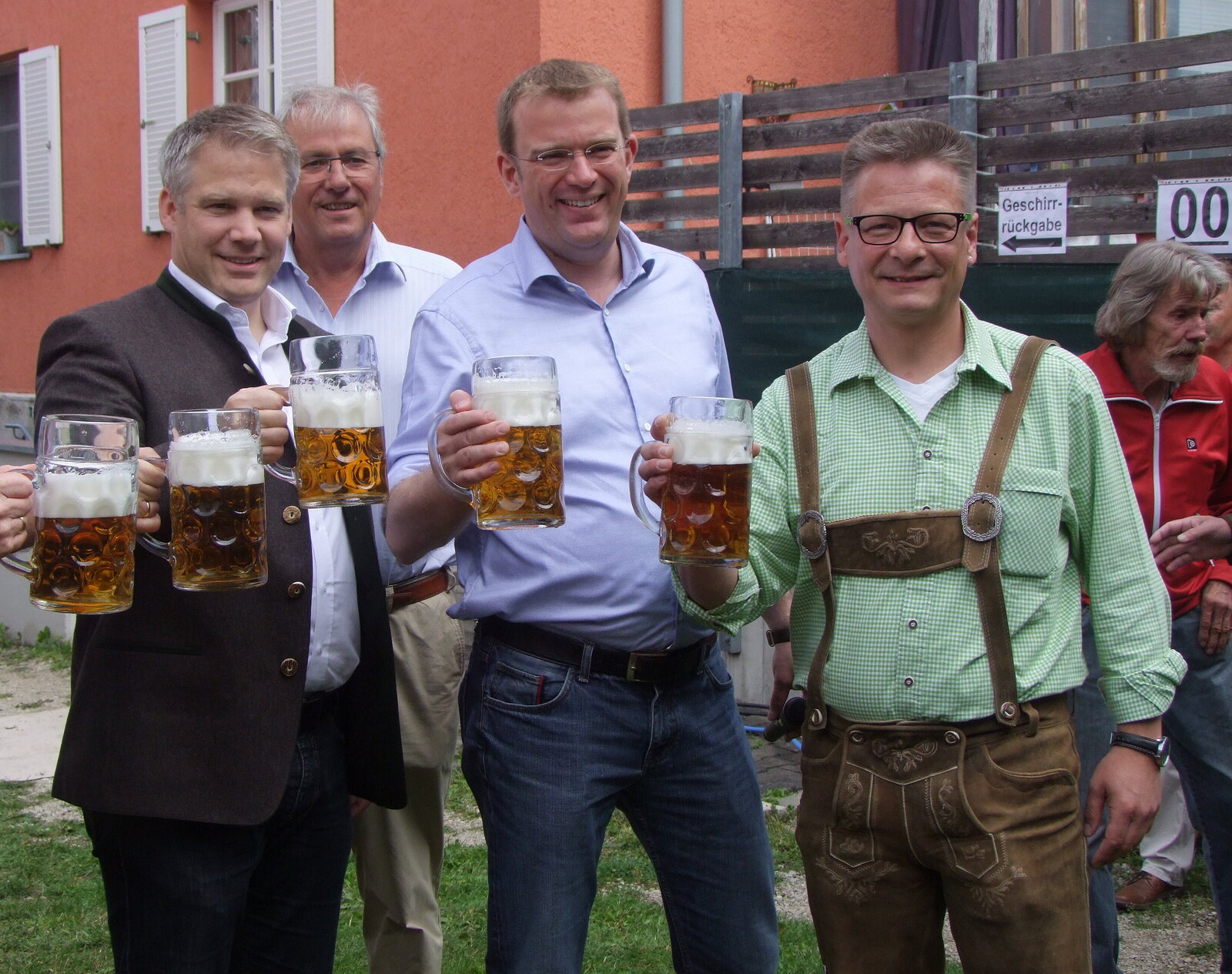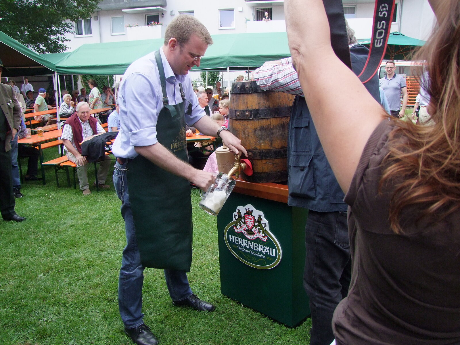 Der Wettergott meinte es gut mit dem CSU-Ortsverband Münchener Straße. Bei gutem Wetter trafen sich wieder einige Hundert Gäste zum Stadtteilfest im Hinterhof der Münchener Straße 64. Die Mannschaft des CSU-Ortsverbandes hatte wieder hervorragend für Speis und Trank gesorgt. MdB Dr. Reinhard Brandl, der selbstverständlich für das gute Wetter gesorgt hatte, wie es seine Pflicht als Schirmherr war, zapfte gekonnt mit zwei Schlägen das erste Fass Bier an. Auch für die kleinen Gäste war wieder ein schönes Programm vorbereitet. Die Kinder konnten sich mit der Hüpfburg vergnügen und an einem Ballwettfliegen teilnehmen. Das Stadtteilfest war eine rundum gelungene Veranstaltung. Alle Gäste freuen sich bereits jetzt auf eine Wiederholung im nächsten Jahr. Ortsvorsitzender Stephan Ertl bedankte sich beim Schirmherrn, bei den zahlreichen Gästen und bei allen Helfern für den reibungslosen Ablauf des Festes.