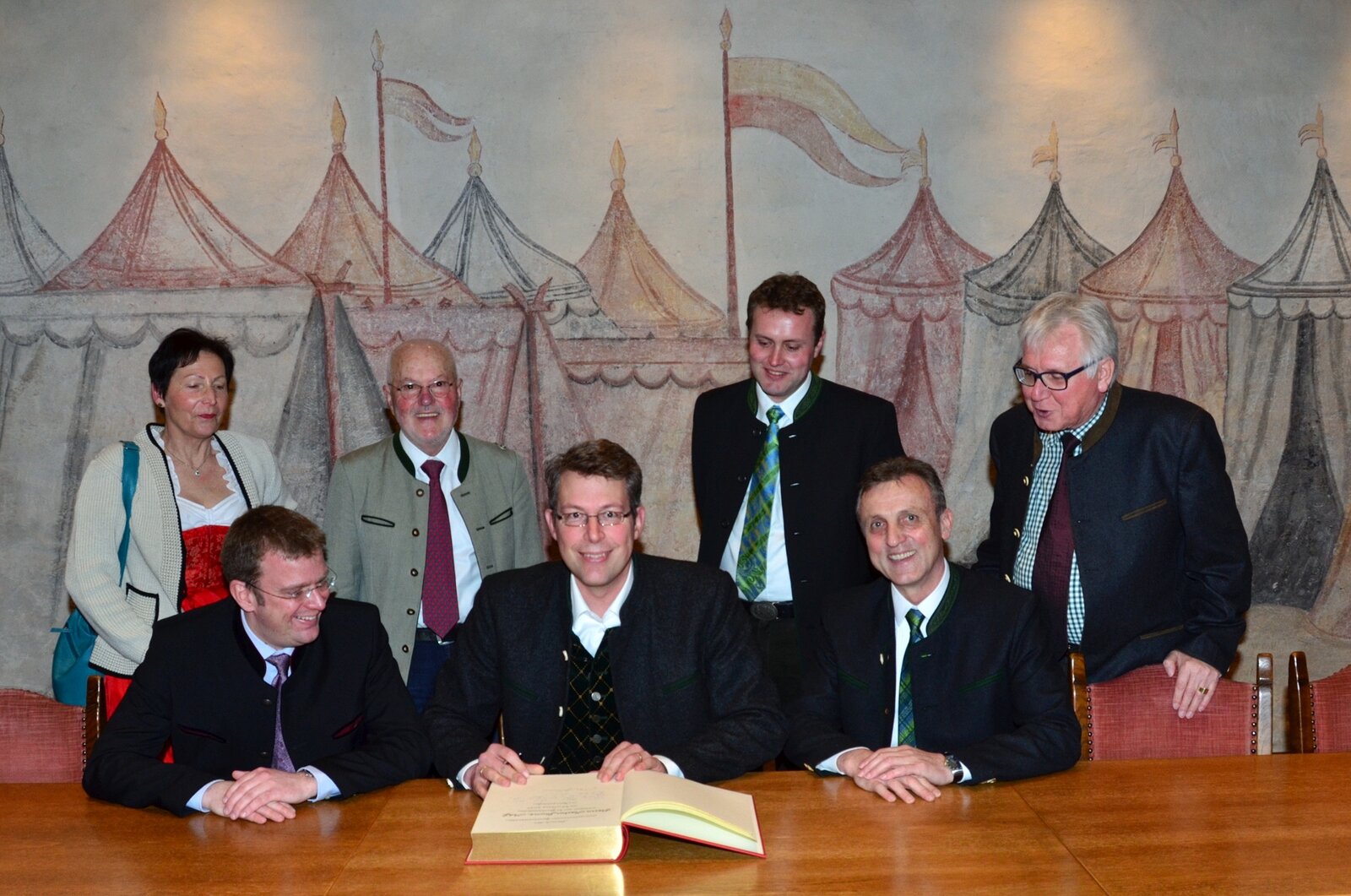 Der stellvertretende Generalsekretär der CSU und Vorsitzende der CSU-Grundsatzkommission, MdL Markus Blume, war Ehrengast und Redner beim diesjährigen Starkbierfest des CSU-Ortsverbandes Rennertshofen. Bürgermeister Georg Hirschbeck bat den Gast um einen Eintrag ins Goldene Buch des Marktes Rennertshofen. In seiner launigen Rede ging Markus Blume aber auch auf aktuelle politische Themen ein und lobte die örtlichen Mandatsträger für ihre gute Arbeit. MdB Dr. Reinhard Bradl war ebenfalls gekommen und freute sich mit dem CSU-Ortsvorsitzenden Thomas Hager über die große Zahl von Besuchern.