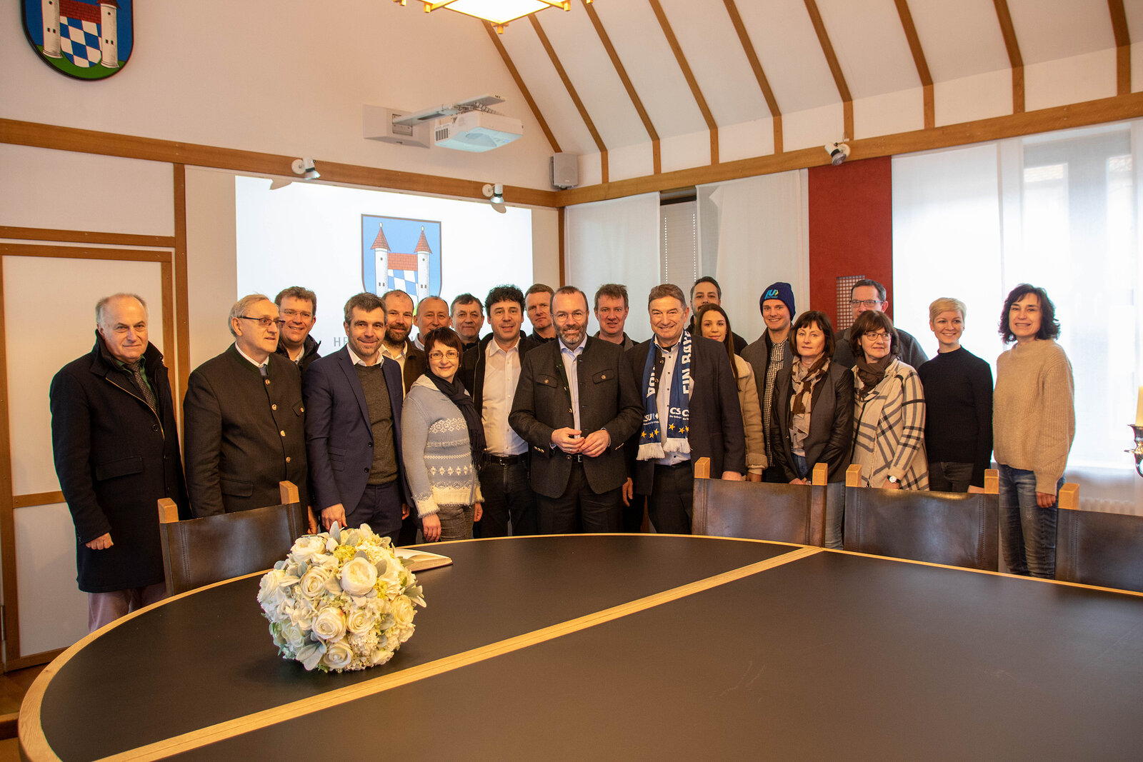 Der Europaabgeordnete Manfred Weber war zu einer großen öffentlichen Veranstaltung auf den Pförringer Marktplatz gekommen. Gerne trug er sich dabei ins Goldene Buch des Marktes Pförring ein.
