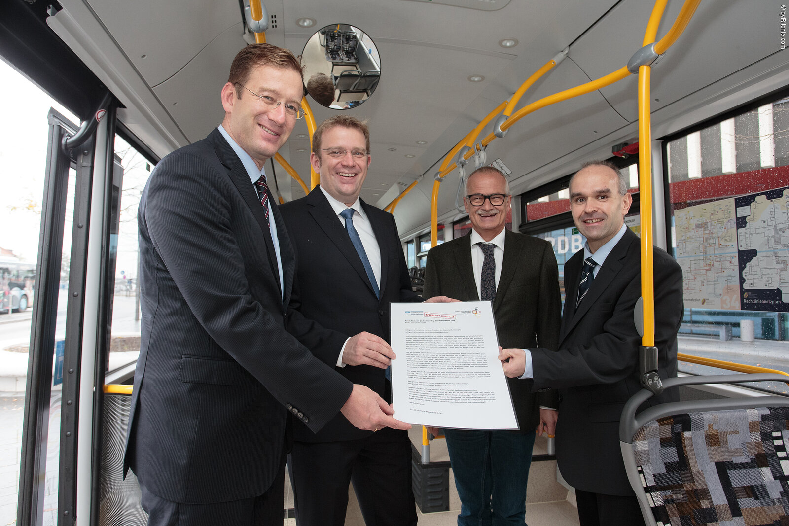 Auf Einladung von INVG-Geschäftsführer Dr. Robert Frank besuchte MdB Dr. Reinhard Brandl (CSU) den Ingolstädter Nordbahnhof, der 2012 zu einer modernen Verkehrsdrehscheibe ausgebaut wurde. Frank nahm den Besuch zum Anlass, um im Namen der kommunalen Verkehrsunternehmen einen stärkeren Beitrag des Bundes zum Erhalt und Ausbau der ÖPNV-Infrastruktur zu fordern. MdB Brandl begrüßte die Aktion und nahm die Resolution des Verbands Deutscher Verkehrsunternehmen aus den Händen von Frank entgegen. Er verwies auf den Deutschlandtag des Nahverkehrs am 10. September dieses Jahres, bei dem die Verkehrsunternehmen mit einer eindrucksvollen Sternfahrt von 62 Bussen aus allen Regionen Deutschlands zum Reichstag ihrem Begehren Ausdruck verliehen. Brandl sagte zu, die Aufforderung der INVG sorgfältig zu prüfen.
