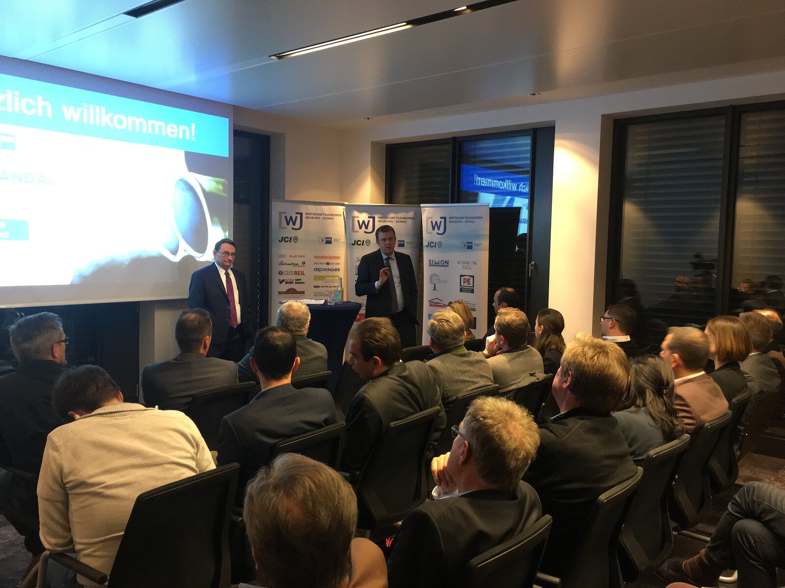 Zu einer Diskussionsveranstaltung zum Thema Diesel luden die Wirtschaftsjunioren Neuburg. Vor 100 interessierten Teilnehmern unterhielten sich Dr. Brandl und sein Nachbarwahlkreiskollege und Verkehrsexperte Ulrich Lange zum Thema Dieselskandal.