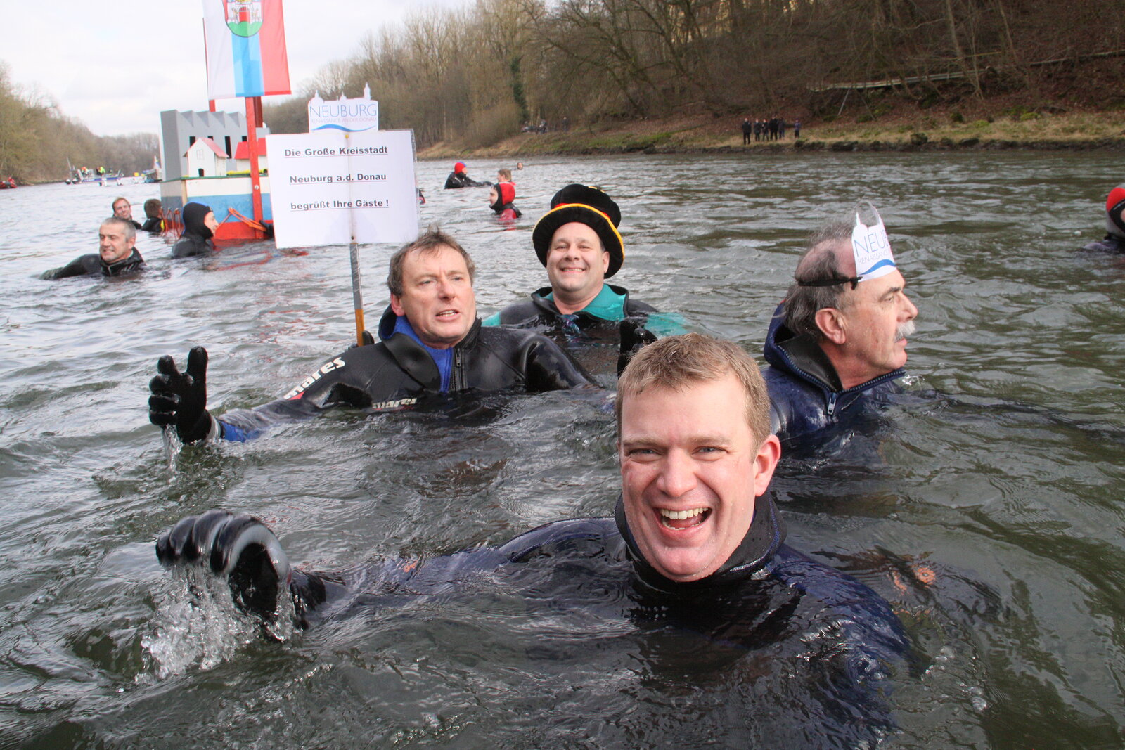 2.169 Mutige stürzten sich in Bittenbrunn in die kalte Donau und schwammen vier Kilometer bis nach Neuburg. Bereits zum 3. Mal war auch MdB Dr. Reinhard Brandl unter den Wagemutigen. Das Neuburger Donauschwimmen ist mittlerweile das größte Event dieser Art in ganz Europa. Auch aus der Neuburger Partnerstadt Sete nahm neben der Lokalprominenz auch eine Delegation teil. Bei der anschließenden Siegerehrung in der Ostend-Halle erhielt die Gruppe des Jagdgeschwaders einen Preis, weil sie die stärkste Delegation stellte. Am Abend folgte dann der Wasserwacht-Ball, bei dem die Ostend-Turnhalle bis auf den letzten Platz gefüllt war.