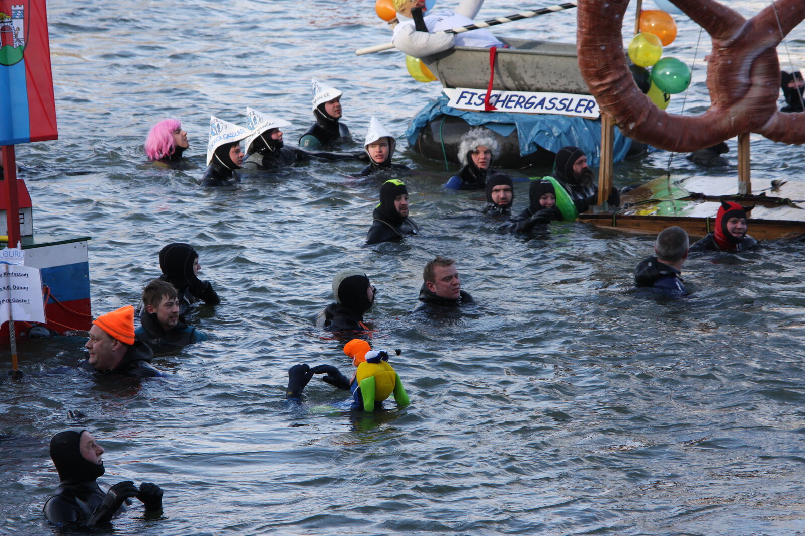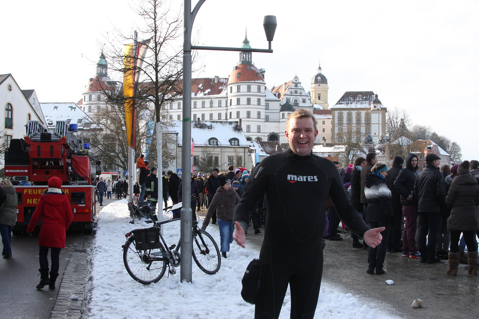 2182 Menschen sprangen in die zweieinhalb Grad kalte Donau und schwammen ca. vier Kilometer von der Staustufe Bittenbrunn bis zum Ruderclub am Donaukai. Die meisten Schwimmer tragen Neoprenanzüge, aber 48 Wagemutige schwammen in normaler Badebekleidung. Auf der Donau fand durch die vielen Flöße und zum Teil maskierten Schwimmer ein riesiger Faschingszug statt. Unter den Schwimmern war auch in diesem Jahr MdB Dr. Reinhard Brandl, der mit OB Dr. Bernhard Gmehling und Stadtrat Matthias Enghuber in der Gruppe der Stadt Neuburg schwamm und wohlbehalten am Ruderclub angekommen ist.