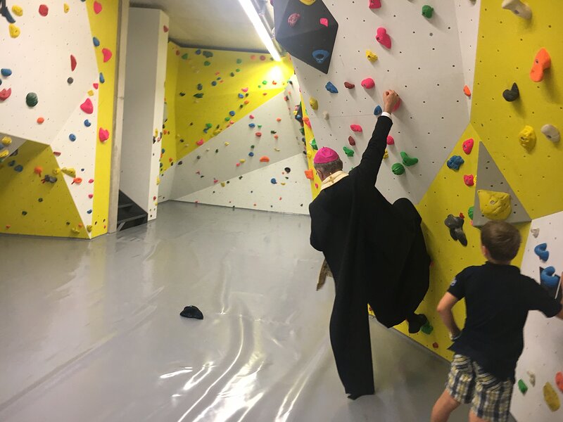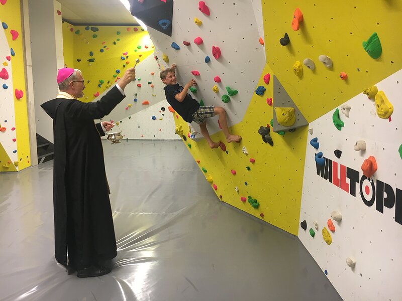 Als "phänomenal" bezeichnete Bischof Gregor Maria Hanke das Kletterzentrum der Sektion Eichstätt des Deutschen Alpenvereins auf dem Blumenberg. Bischof Gregor Maria, der selbst Mitglied beim Alpenverein ist, erteilte den kirchlichen Segen und erhielt als Einziger einen Schlüssel zur Halle, damit er jederzeit zum Klettern die Halle nutzen kann. "Das ist ein Meilenstein in unserer Sektionsgeschichte" sagte der Vorsitzende, Josef Bauer, in seiner Rede. Gerd Seibold, der als "Vater der Anlage bezeichnet werden darf" wurde zum Ehrenmitglied der Sektion Eichstätt ernannt. MdB Dr. Reinhard Brandl gratulierte der Sektion Eichstätt zum neuen Kletterzentrum wünschte den Kletterern viel Erfolg und eine unfallfreie Nutzung der Anlage.