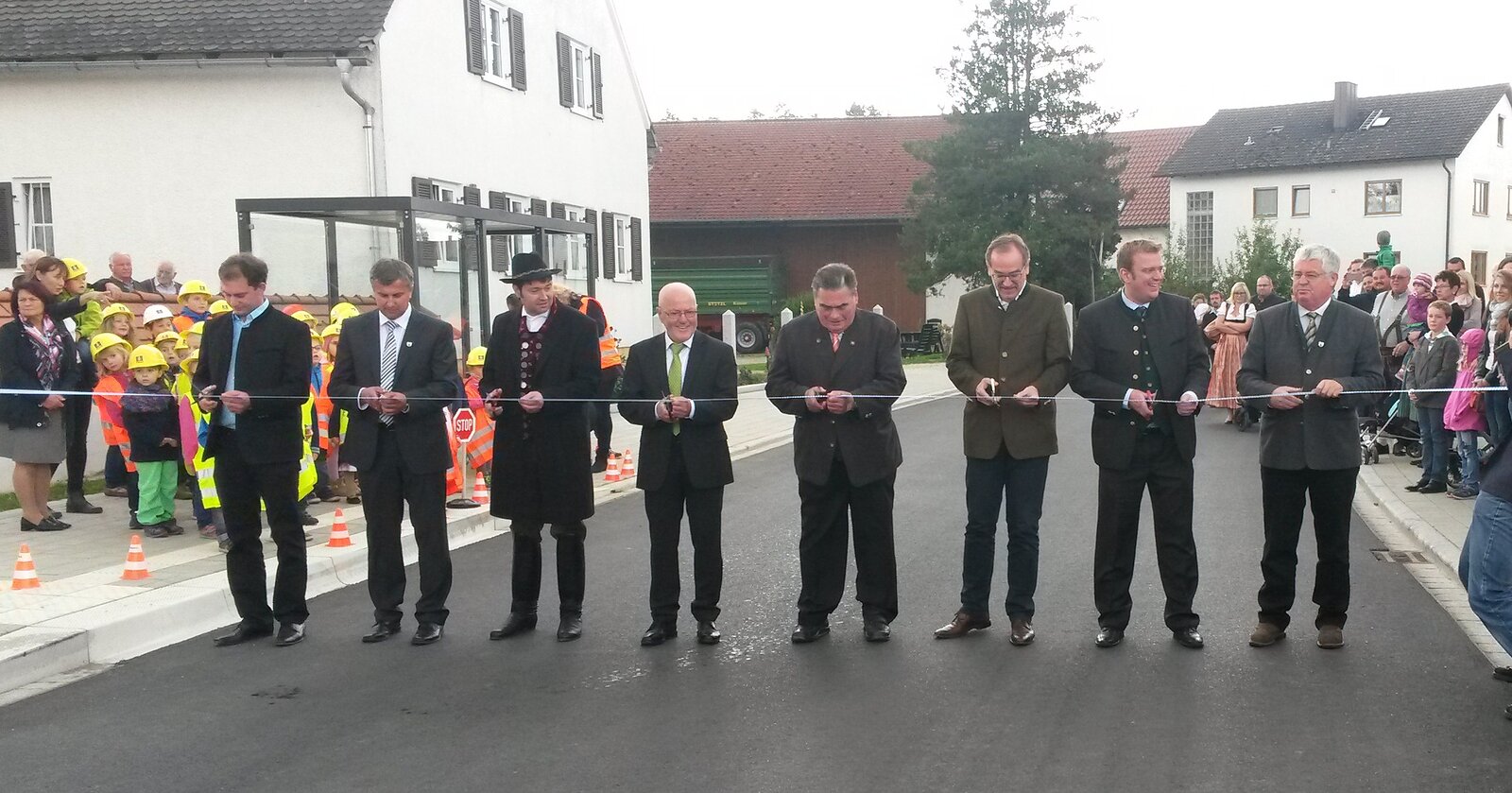 Nach über 5jähriger Bauzeit konnte die 1,4 Kilometer lange Ortsdurchfahrt von Weilach eingeweiht werden. Bürgermeister Alfred Lengler lobte in seiner Rede die große Geduld der Weilacher, die während der Bauzeit viel Ungemach ertragen mußten. Umso mehr freut sich der ganze Ort jetzt über die "schönste Ortsdurchfahrt im ganzen Landkreis". Mit dem obligatorischen Durchschneiden des Bandes durch Bürgermeister Alfred Lengler, Altbürgermeister Jakob Bitscher, stv. Landrat Alois Rauscher, Bezirksrat Robert Knöferl und MdB Dr. Reinhard Brandl wurde die Ortsdurchfahrt offiziell dem Verkehr übergeben.