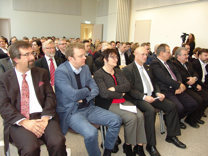 Am 1. Dezember 2018 war es soweit: die neue Dienststelle des Landratsamtes Eichstätt in Lenting konnte eingeweiht und der Bevölkerung vorgestellt werden. Landrat Anton Knapp bezeichnete in seiner Rede das neue Gebäude als "wichtigen Meilenstein in der Geschichte des Landkreises". Nach dem Rückblick auf die Entstehungsgeschichte des am Ende 18,6 Millionen teuren Projekts mit nachhaltigem Konzept betonte der Landrat seine Überzeugtheit von dem Neubau: "Wir erhalten ein Dienstgebäude nach dem neusten Stand, dessen Raumplanung auf die Erfordernisse unserer Sachgebiete und Einrichtungen maßgeschneidert ist." BeimFestakt und anschließendem Rundgang durch das Geäbude war auch Dr. Reinhard Brandl MdB mit dabei und freute sich über das gelungene Bauwerk.