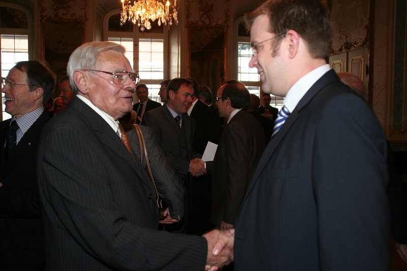 Neben Ministerpräsident Horst Seehofer, Staatsminister Siegfried Schneider und Landrat Anton Knapp gratulierte auch MdB Dr. Reinhard Brandl Altlandrat Konrad Regler zu seinem 80. Geburtstag. Im Spiegelsaal der Fürstbischöflichen Residenz würdigten die Festredner Horst Seehofer und Anton Knapp die Verdienste von Konrad Regler um den Landkreis Eichstätt.