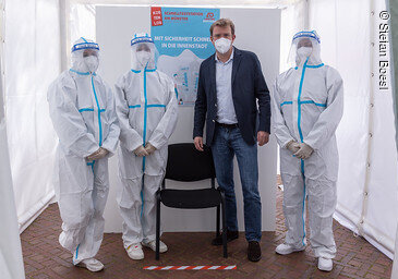 Der Bundestagsabgeordnete Dr. Reinhard Brandl machte sich ein Bild von der privaten Schnellteststation. „Die Station hier an exponierter Stelle ist eine super Anlaufstelle für alle Bürgerinnen und Bürger“, so Brandl bei der Eröffnung. „Wir müssen zurück ins normale Leben. Impfen und Testen ist der Weg in die Freiheit.“