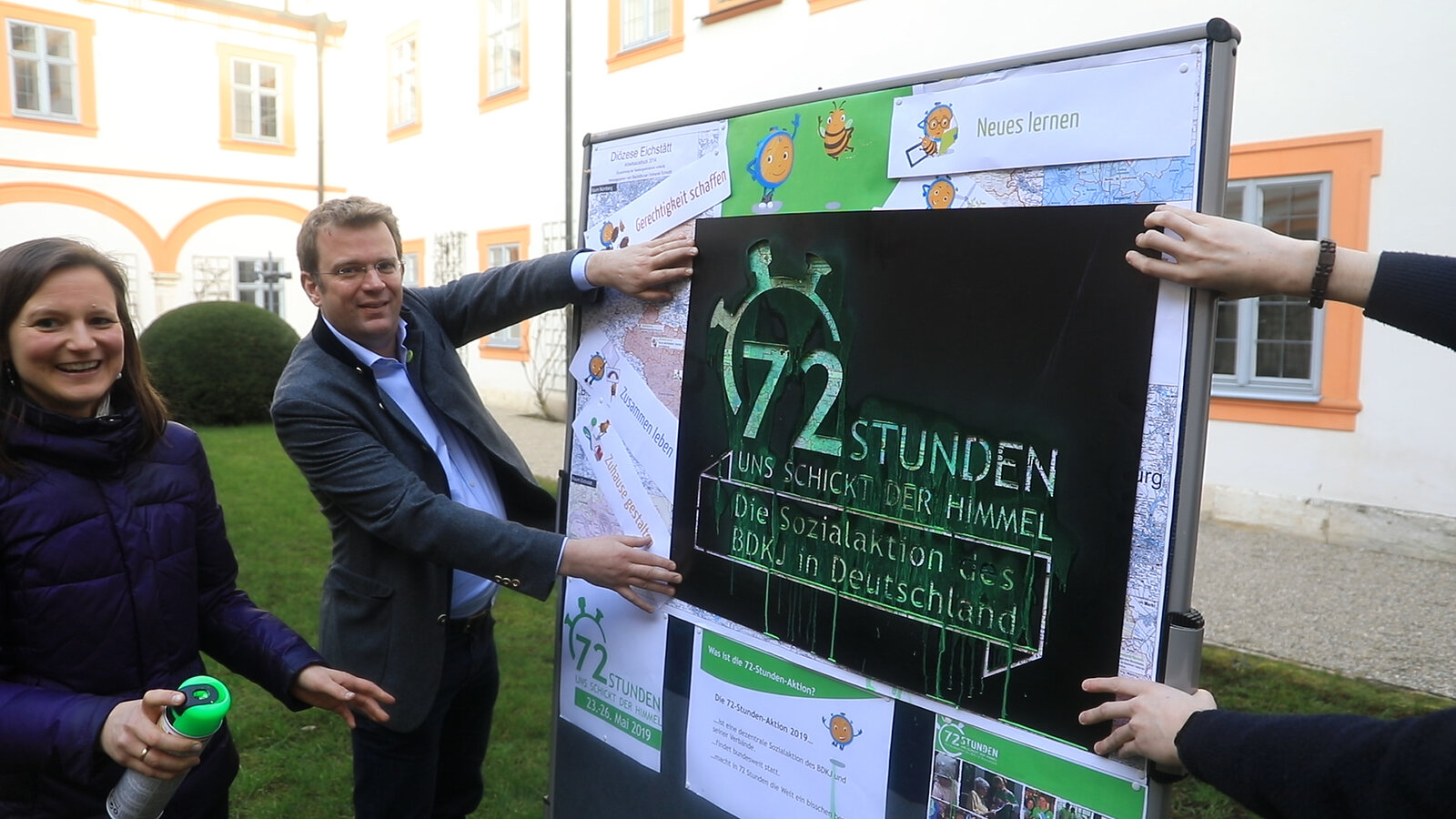 72 Tage vor Beginn der 72-Stunden-Aktion nutzen die BDKJ-Diözesanvorsitzende Angela Hundsdorfer und ihr Team die Vollversammlung des Diözesanrates für den Auftakt der Aktion, die in diesem Jahr unter dem Motto "Uns schickt der Himmel" steht. Ca. 40 Gruppen mit rund 700 Jugendlichen haben sich zur Teilnahme bereits angemeldet. Bei der Auftaktveranstaltung lobte Schirmherr Dr. Reinhard Brandl die engagierten Jugendlichen, die "ihre Heimat lebenswerter machen, sich einbringen und kreative Ideen entwickeln".