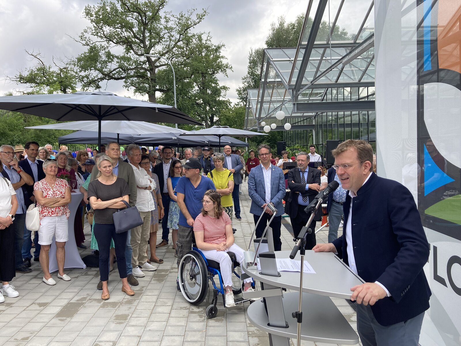 Zur Eröffnung der neuen Gärtnerei FLORANUM war der Abgeordnete gemeinsam mit Landtagskollegen Alfred Grob einer der Ehrengäste. In seinem Grußwort lobte er den „bunten Blumenstrauß an Arbeitsplätzen“, den das Floranum für die Menschen mit Behinderung bietet.