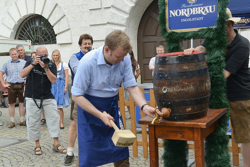Zur Eröffnung des Schanzer Donaufestes herrschten noch tropische Temperaturen. Das Wettanzapfen zwischen Oberbürgermeister Dr. Christian Lösel und MdB Dr. Reinhard Brandl konnte stattfinden. Reinhard Brandl begann und brauchte 4 Schläge bis das Bier floß. Christian Lösel schaffe dies mit nur 2 Schlägen. Damit war Christian Lösel eindeutig Sieger beim Wettanzapfen. Reinhard Brandl nahm es sportlich und gratulierte seinem Freund Christian. Bereits zwei Stunden später zogen Regenwolken auf, die das Donaufest nahezu vollständig verregneten. So notwendig der Regen für die Natur war, so bedauerlich war er für den Veranstalter, die Narrwalla Ingolstadt, die mit immensem Arbeitsaufwand das Donaufest vorbereitet hatte.