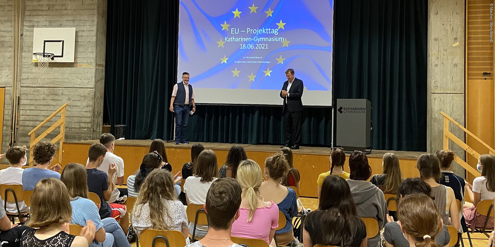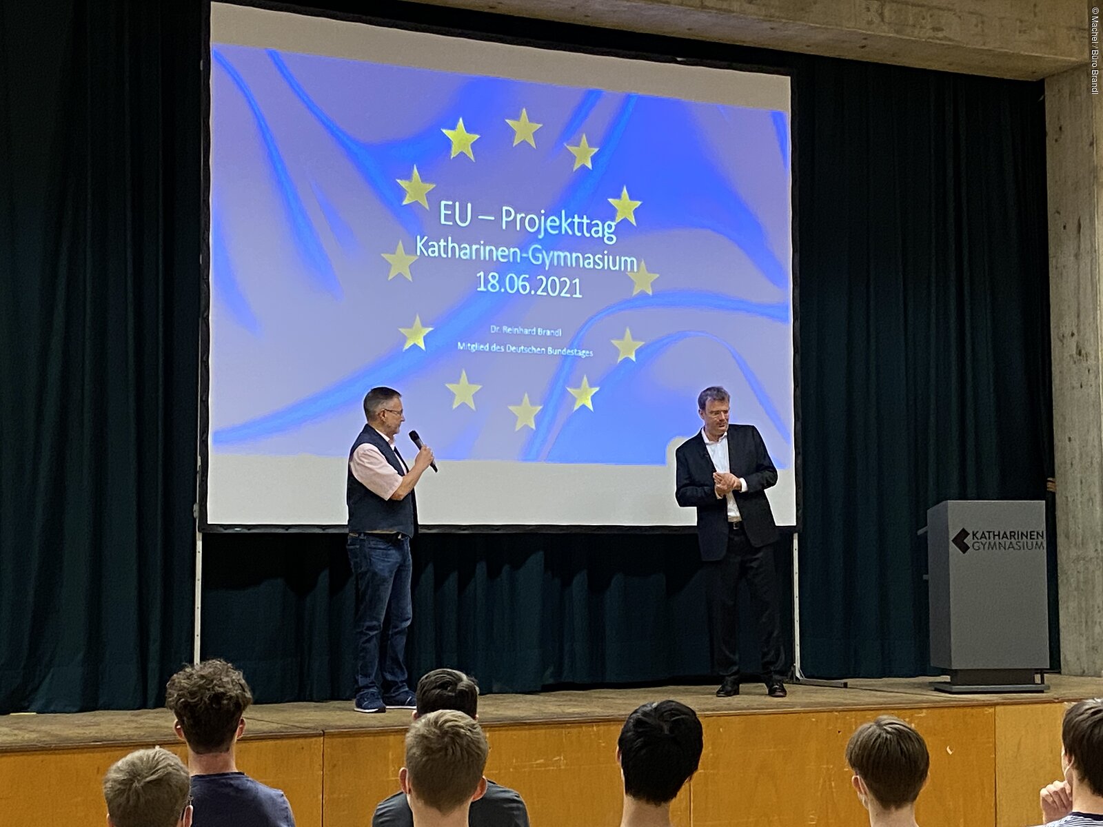 Einmal im Jahr findet für Abgeordnete der EU-Projekttag in Schulen statt. Bei dieser Gelegenheit stellt Dr. Brandl im jährlichen Wechsel quer durch den Wahlkreis die EU, ihre Institutionen und vor allem den Gedanken eines vereinten Europas vor.