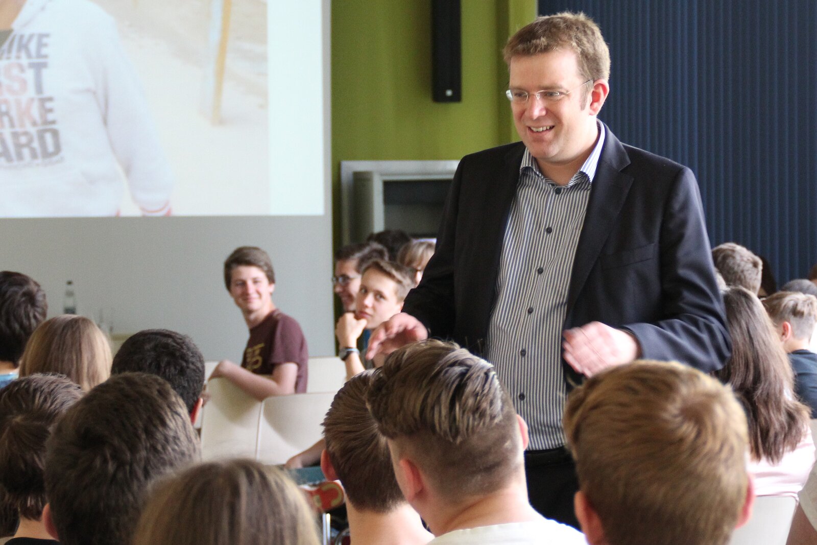 Beim diesjährigen EU-Projekttag am Reuchlin-Gymnasium beschäftigte sich MdB Dr. Reinhard Brandl mit dem Thema: "Die Krisen in der Ukraine und in Syrien". Der Abgeordnete führte die sehr interessierten Schülerinnen und Schüler mit einer anschaulichen Power-Point-Präsentation an die Thematik heran. In der anschließenden Diskussion wurden Fragen zur globalen Sicherheit und deutsche Instrumente zur Lösung von Konflikten besprochen. Klassenleiterin Eva Heindl bedankte sich bei Dr. Reinhard Brandl für sein Kommen.
