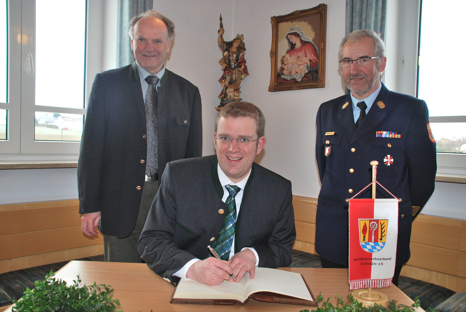 Die Freiwillige Feuerwehr Eitensheim hat vor kurzem als Ersatzbeschaffung ihr neues Versorgungsfahrzeug (Doka) erhalten. Nach alter Feuerwehrtradition sollte dieses Fahrzeug vor Inbetriebnahme den kirchlichen Segen erhalten. Nach einem feierlichen Gottesdienst segnete Ortspfarrer Michael Konecny das Fahrzeug. Nach Kreisbrandrat Alois Strobl und Landrat Anton Knapp sprach auch MdB Dr. Reinhard Brandl ein Grußwort und beglückwünschte seine Heimatfeuerwehr zum neuen Fahrzeug. Mit diesem Versorgungsfahrzeug könne sich die Feuerwehr noch mehr ins Dorfleben einbringen und wertvolle Dienste leisten, so Brandl. Zum Abschluß der Feierlichkeiten trugen sich Landrat Anton Knapp und MdB Dr. Reinhard Brandl noch ins Goldene Buch der Gemeinde Eitensheim ein und bedankten sich bei Bürgermeister Michael Stampfer für diese Ehre.