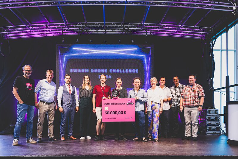 Die Jury wählte „Flying Algorithm“ zum Gewinner. Sie schafften es am besten Drohnenschwärme effektiv zu koordinieren und komplexe Aufgaben zu lösen.