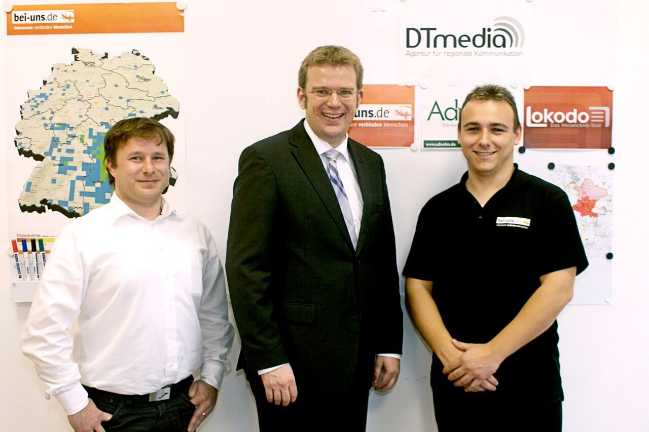 Reinhard Brandl besuchte die Firmengruppe DT-Media mit den Firmen Adnobis, bei uns.de und Lokodo. Ihm war über das Portal bei-uns.de das Unternehmen seit Jahren schon vertraut. Die beiden Geschäftsführer Daniel Reisinger und Thomas Feierer stellten die Entwicklung ihres Unternehmens dem Abgeordneten vor. Er zeigte sich dabei tief beeindruckt. Besonders hoben die beiden Jungunternehmer ihren neuen Verzeichnisdienst Lokodo hervor, der es Gemeinden, Landkreisen und Behörden ermöglicht, ein lokales Firmenverzeichnis in ihre Webseiten mit einzubinden. Reinhard Brandl versprach den beiden Gründern, sie weiterhin zu unterstützen. Gerade die Präsenz von heimischen Firmen im Internet ist wichtig für eine junge Generation die sich im Netz über Einkaufs- und Dienstleistungsmöglichkeiten informiert. Es muss das Motto gelten- überregional informieren, regional einkaufen.