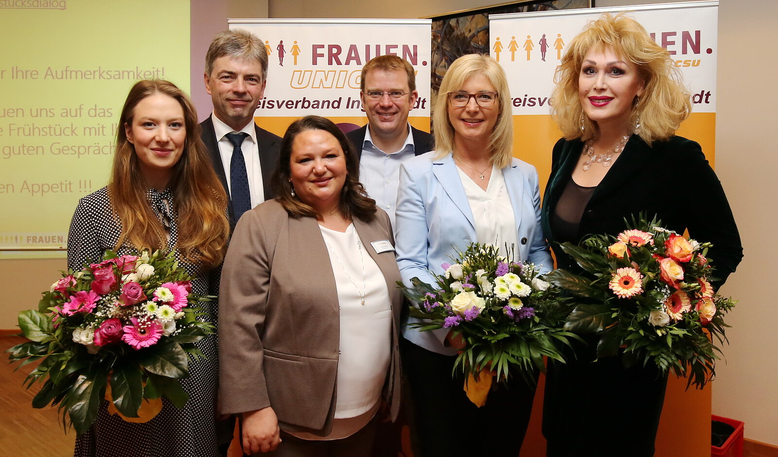 Zum Frühstücksdialog der Ingolstädter Frauen Union waren wieder über 100 Gäste gekommen. In diesem Jahr konnte FU-Kreisvorsitzende Derya Basal zwei völlig unterschiedliche Frauen zur Diskussionsrunde begrüßen. Zum Einen war die Bayerische Staatsministerin für Umwelt und Naturschutz, Ulrike Scharf, und zum Anderen die Schauspielerin Gloria Gray gekommen. Während des Dialogs stellte sich heraus, dass die zwei zunächst unterschiedlich wirkenden Frauen doch eine ganze Menge an Gemeinsamkeiten hatten. Bereits zum 10. Mal war Dr. Reinhard Brandl MdB zum "Tag der Frau" gekommen und erhielt für sein launiges Grußwort viel Applaus.