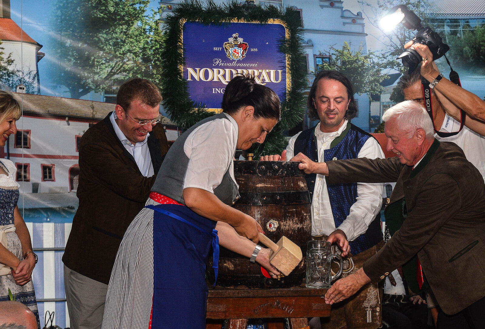 Bei gutem Wetter startete der Einzug zum Gaimersheimer Volksfest vom Marktplatz. Im Zelt angekommen, zapfte Bürgermeisterin Andrea Mickel das erste Faß an. Ihr assistierten MdB Dr. Reinhard Brandl und 3. Bürgermeister Günter Bernhardt.