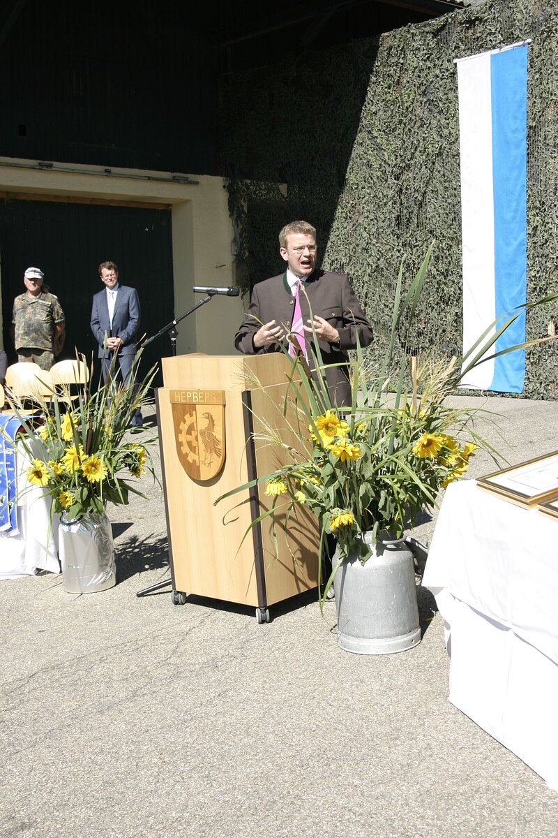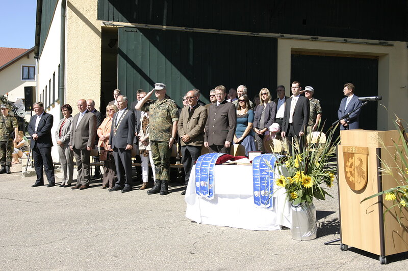 Die Gemeinde Hepberg besiegelte die Patenschaft mit der 4. Kompanie des Gebirgspionierbataillon 8 mit einem sehr beeindruckenden Festakt. Nach einem feierlichen Gottesdienst in der Pfarrkirche Hepberg bewegte sich der Festzug zum Anwesen der Familie Heinrich, wo dann im Rahmen eines Appells die Patenschaftsurkunden ausgetauscht wurden. Bürgermeister Albin Steiner und der Bataillonskommandeur, Oberstleutnant Oliver Kobza, betonten in ihren Reden, dass die Patenschaft keine Einbahnstraße werden soll. MdB Dr. Reinhard Brandl sagte in seinem Grußwort, dass die Soldaten einen Bezug zu den Menschen brauchen, für die sie ihren Einsatz leisten und es liegt an den Menschen wie diese Patenschaft gelebt wird. Sie sind fester Bestandteil unserer Gesellschaft und ich wünsche mir, dass viele Städte und Gemeinden dem heutigen Beispiel folgen, so Reinhard Brandl in Hepberg.