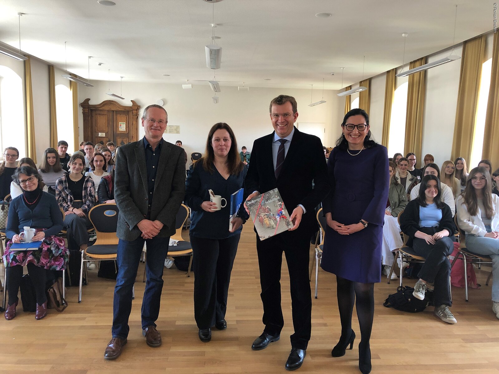 Anlässlich des deutsch-französischen Tags waren die französische Generalkonsulin Corinne Pereira und der der Bundestagsabgeordnete Dr. Reinhard Brandl zu Besuch am Neuburger Descartes Gymnasium.