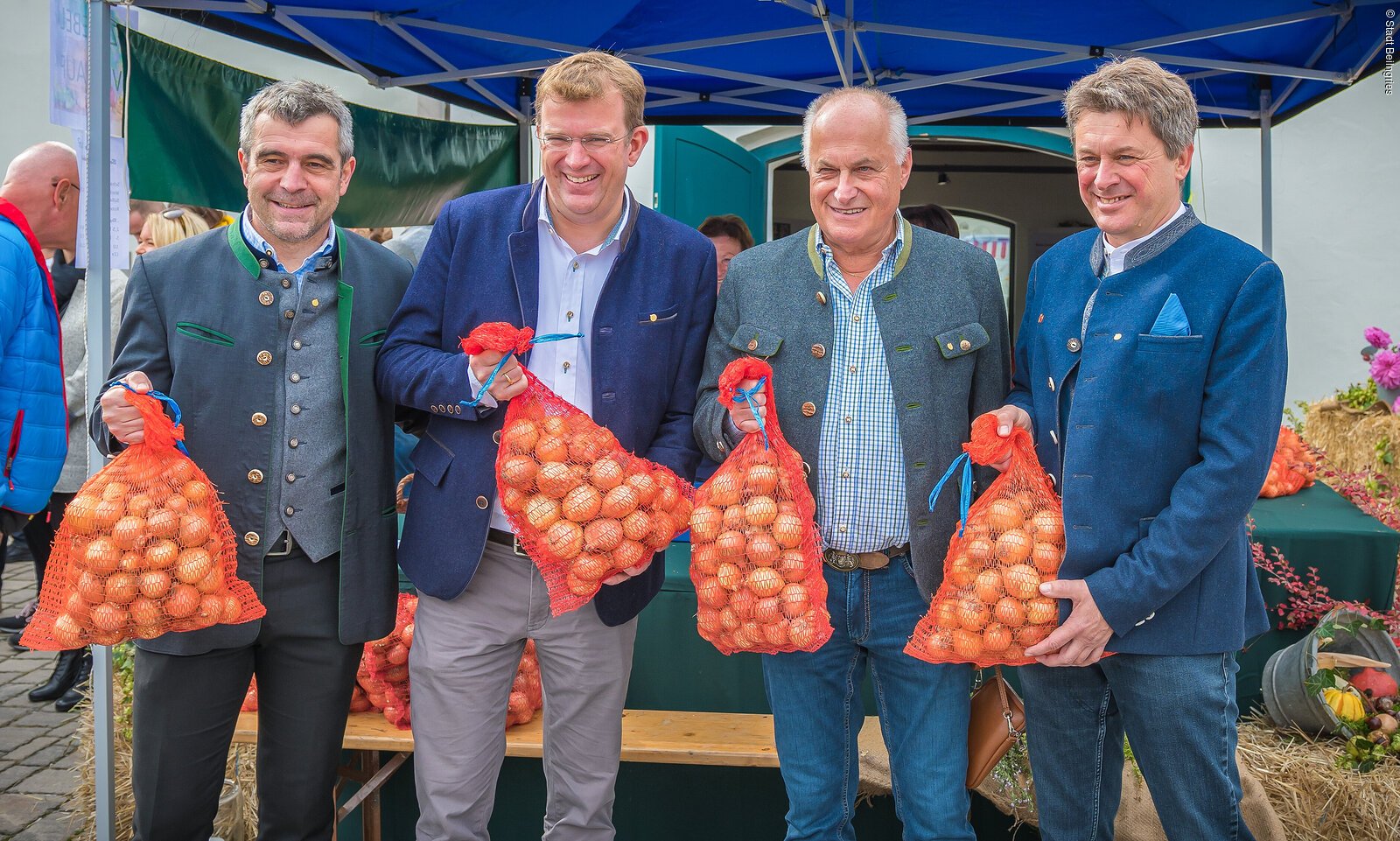 Unter den Besuchern waren auch Landrat Alexander Anetsberger und der Bundestagsabgeordnete Reinhard Brandl. Beide freuten sich, dass im Reich der „Zwüfelatscha“, der Zwiebelmarkt weiterhin eine solche Strahlkraft entfalte.