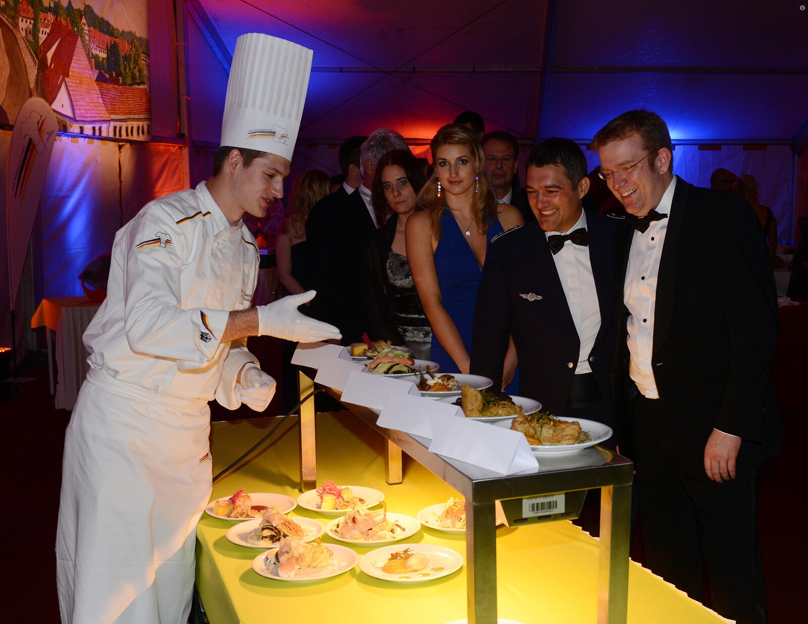 Das gesellschaftliche Ereignis in Neuburg war wieder einmal der Ball des Taktischen Luftwaffengeschwaders 74 in der Wilhelm-Frankl-Kaserne. Alle 480 Gäste wurden vom Kommodore, Oberst Frank Gräfe und von seinem Stellvertreter, Oberstleutnant Holger Neumann, persönlich begrüßt. Höhepunkt des Abends war zweifelsohne wieder das Buffet, das von der Nationalmannschaft der Köche der Bundeswehr gezaubert wurde und lukullische Leckerbissen bot.