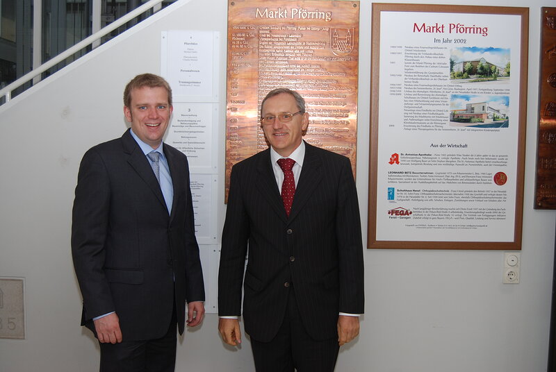 Wasserschutz in den Donauauen, zukunftsfähiger Ausbau der Hauptschule und schnelle Internetanbindung, das waren die zentralen Themen, die Bürgermeister Bernhard Sammiller als aktuelle wichtigste Aufgaben im Markt Pförring formulierte. Sammiller nutzte die Gelegenheit, diese Themen dem CSU-Bundestagskandidaten Dr. Reinhard Brandl bei seinem Besuch im Markt vorzustellen. Viel Unterstützung habe Pförring im Bereich Wasserschutz unter anderem durch den früheren Bundestagsabgeordneten und jetzigen Ministerpräsidenten Horst Seehofer erfahren. Für die Hauptschule habe der Markt den notwendigen Antrag auf Genehmigung einer Regionalschule gestellt, und für das Thema Wirtschaftsstandort habe der Markt die richtigen Weichenstellungen vorgenommen. Brandl versicherte, im Falle seiner Wahl den Markt mit Bürgermeister Sammiller bestmöglich zu unterstützen.