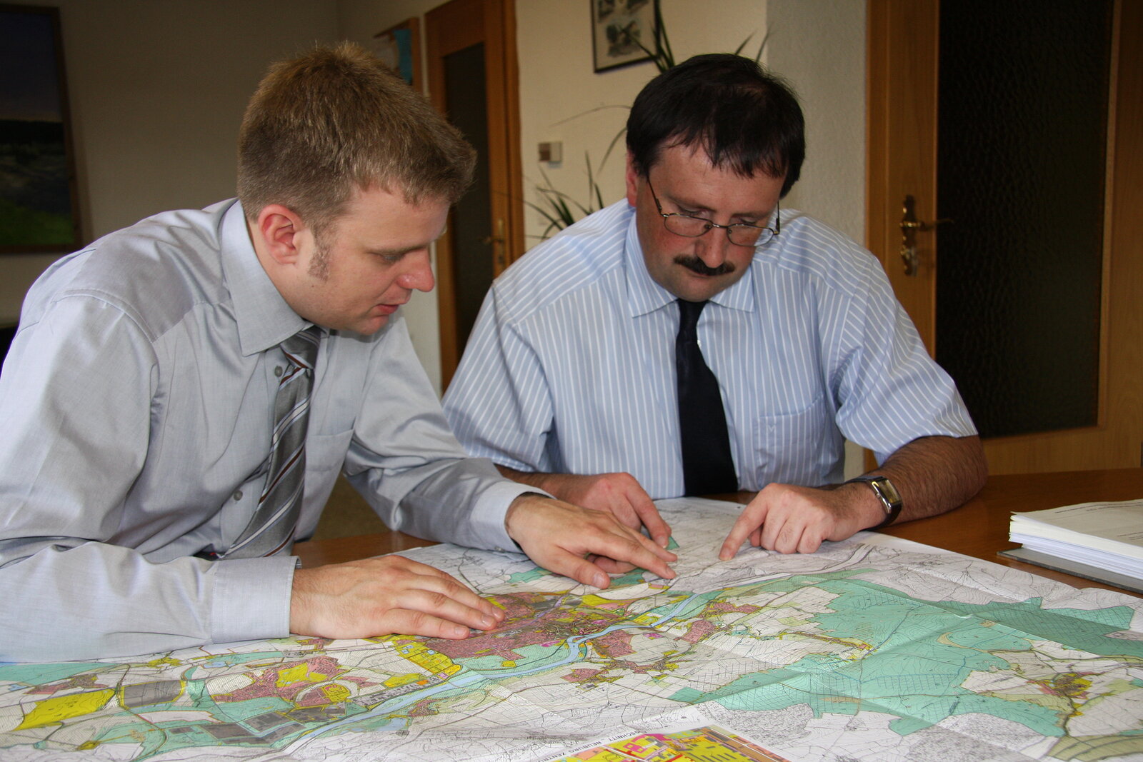 Drei wichtige Anliegen gab Oberhausens Bürgermeister Fridolin Gößl den Bundestagskandidaten Dr. Reinhard Brandl bei dessen Besuch in der Gemeinde mit auf den Weg: Erstens müsse das Bundesinnenministerium stärker die Anliegen der Kommunen vertreten, so etwa gegenüber der Europäischen Union. Dazu müsse unter anderem eine Kommunalabteilung geschaffen werden. Beim Zuschnitt der Ministerien nach der Bundestagswahl sei dies enorm wichtig. Zweitens müssten bei der Bahnprivatisierung die Verkehrswege öffentlich bleiben. Und drittens, und dieses Anliegen ist für die Gemeinde Oberhausen wohl das naheliegendste, müsse die bahnparallele Trasse der B16 in den Bundesverkehrswegeplan aufgenommen werden. Vor allem dieses Thema erläuterte der Bürgermeister anhand zahlreicher Pläne. Darüberhinaus informierte Gößl den Besucher über das DSL-Versorgungskonzept der Gemeinde, die hier eine eigene GmbH für den Ort plane. "Selber etwas machen, statt abzuwarten, was mit uns gemacht wird", fasste Gößl seine Devise zusammen. Letztes Thema war dann noch die Steuerentlastung für die Entnahme aus landwirtschaftlichem Vermögen, weil dies die Belebung und Entwicklung des Ortskerns erleichtere. Brandl fand lobende Worte für die Gemeinde Oberhausen: "Die Oberhausener gehen aktiv mit ihren Problemen um!"