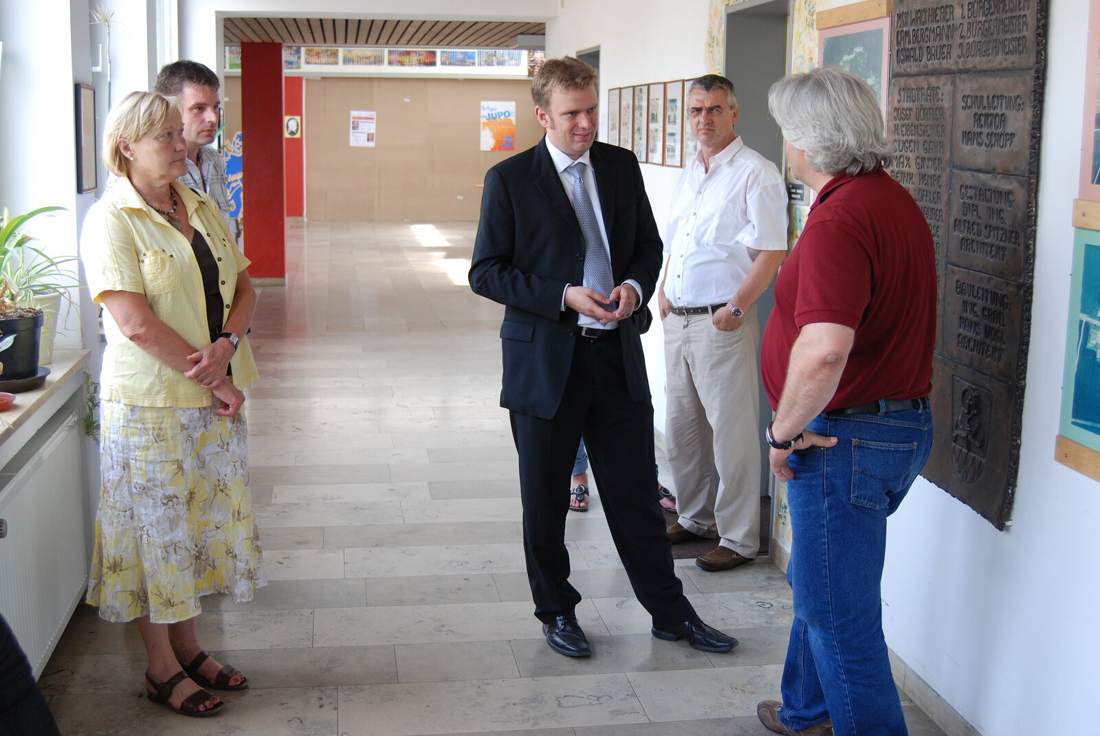 Brigitte Frauenknecht und Reinhard Brandl im Gespräch mit dem Leiter der Hauptschule Beilngries Herrn Schiebel (rechts)