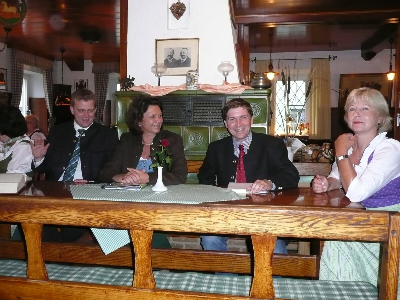 Vor der Bierzeltveranstaltung nahm sich die Bundesministerin für Ernährung, Landwirtschaft und Verbraucherschutz eine Stunde Zeit, um mit den Vertretern landwirtschaftlicher Organisationen im Gasthaus Stief zu reden. Dank der straffen Leitung von AGL-Kreisvorsitzenden Erwin Heckl wurde trotz der Kürze und der Komplexität der Probleme eine breite Palette an Sachfragen gestellt. Die gut vorbereite Ministerin blieb keine Antwort schuldig, gestand aber auch ein, dass Sachzwänge wie z. B. Vorgaben der Eruopäischen Union in einigen Fällen ihre Möglichkeiten einschränken. So sind ihr etwa bei der Besteuerung von Bio-Diesel die Hände gebunden.