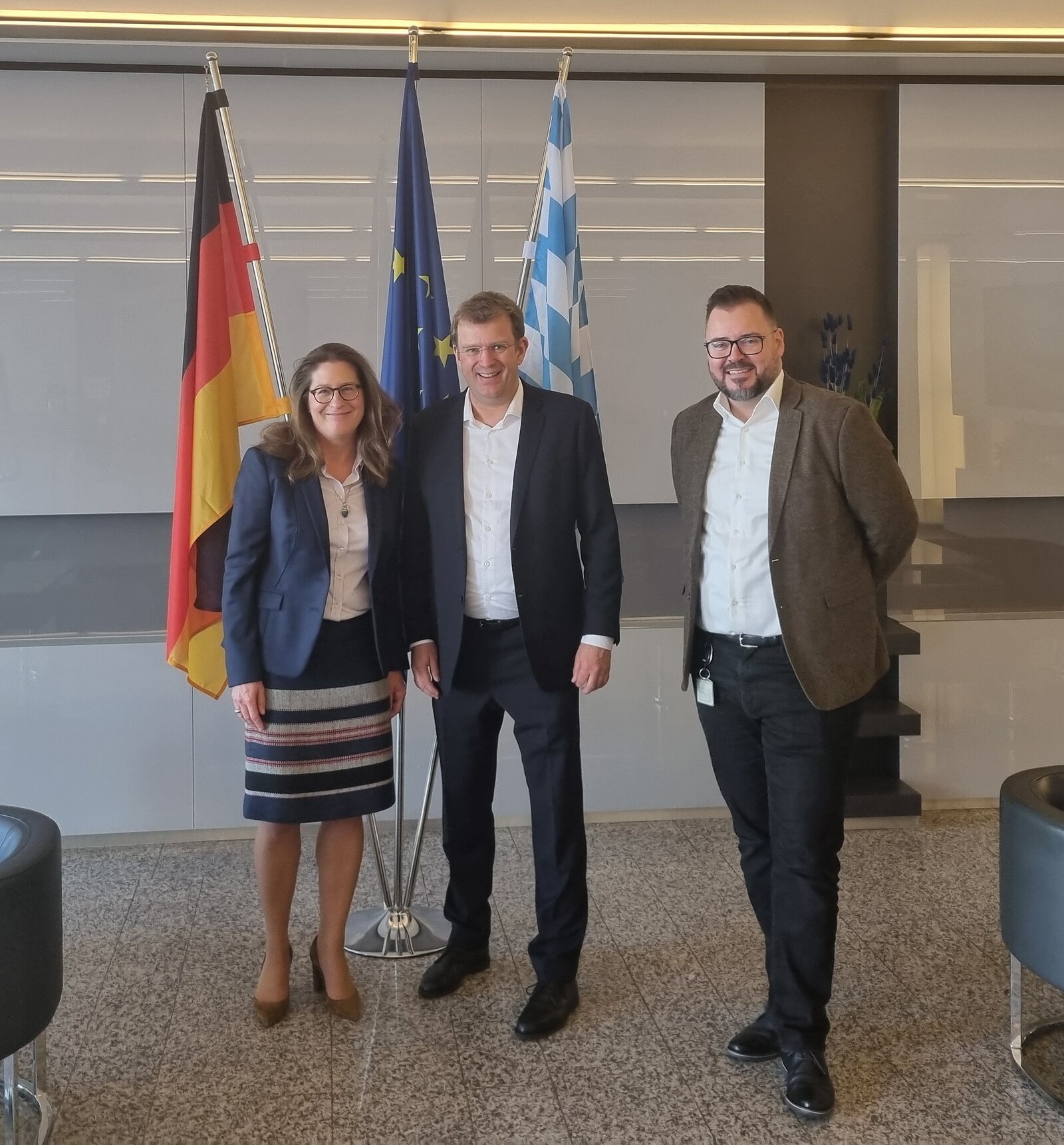 Im Zeichen der Zeitenwende ist der Kontakt mit der Sicherheitsindustrie besonders wichtig. Dr. Brandl traf sich hierzu in der Zentrale der Augsburger Firma RENK mit deren CEO Susanne Wiegand.