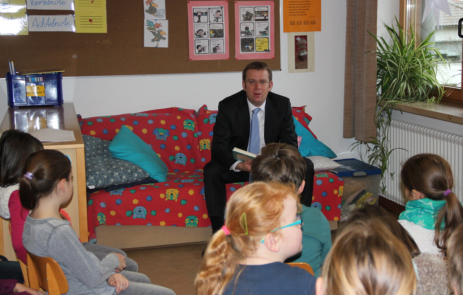 Auch in diesem Jahr beteiligte sich MdB Dr. Reinhard Brandl am bundesweiten Vorlesetag der Stiftung Lesen und war zu den Schülerinnen und Schülern der dritten und vierten Jahrgangsstufe an die Grundschule Kinding gekommen. Schulleiterin Anita Plankl und die Lehrkräfte Stephanie Keckl und Stephanie Meyer begrüßten den Abgeordneten herzlich. Reinhard Brandl las den Kindern aus dem Buch "Die Schule der magischen Tiere" von Margit Auer vor.