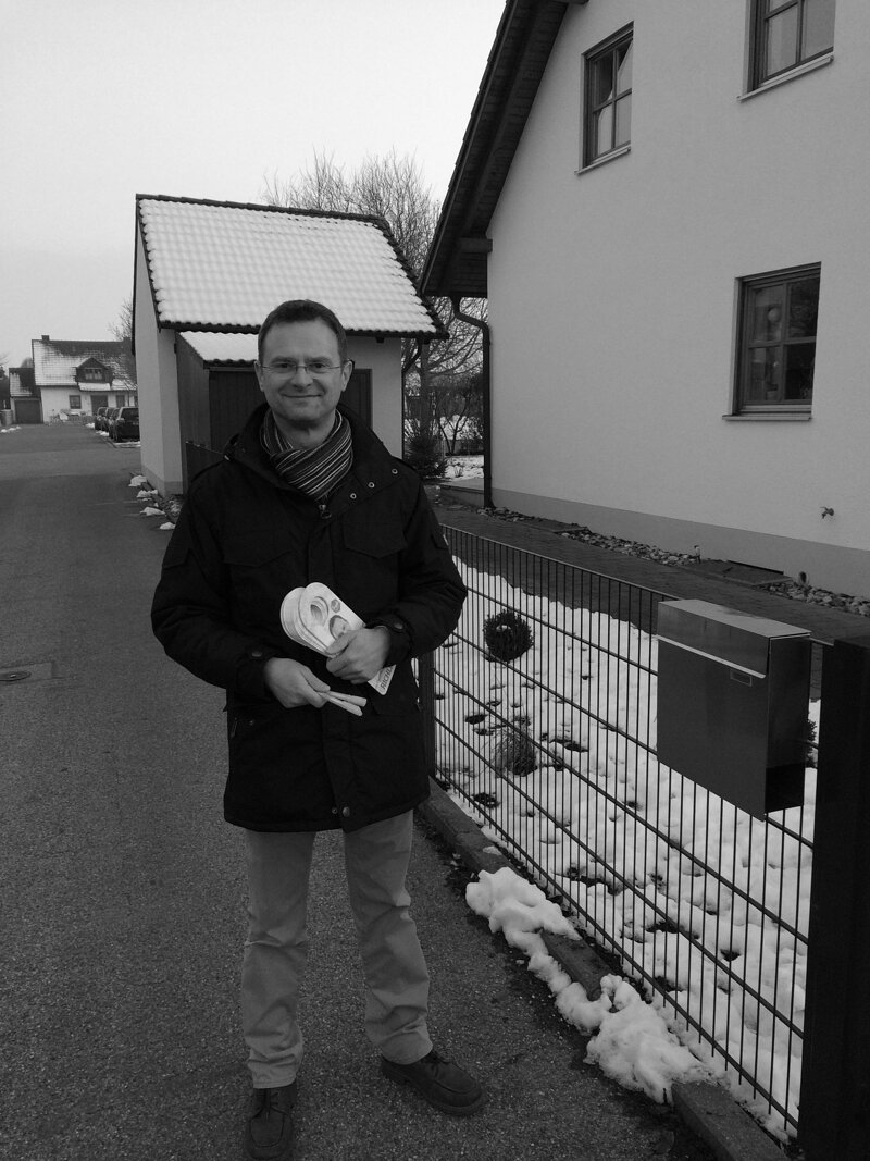 Der Bürgermeisterkandidat der CSU Karlshuld, Frank Richlich, stellt sich im Moment den Bürgerinnen und Bürgern persönlich vor. Gerne hat ihn Reinhard Brandl am Freitag Nachmittag bei seinen Hausbesuchen begleitet. Rund 50 Haushalte haben die Beiden aufgesucht und dort um die Stimme für Frank Richlich bei der Kommunalwahl am 16. März 2014 geworben.