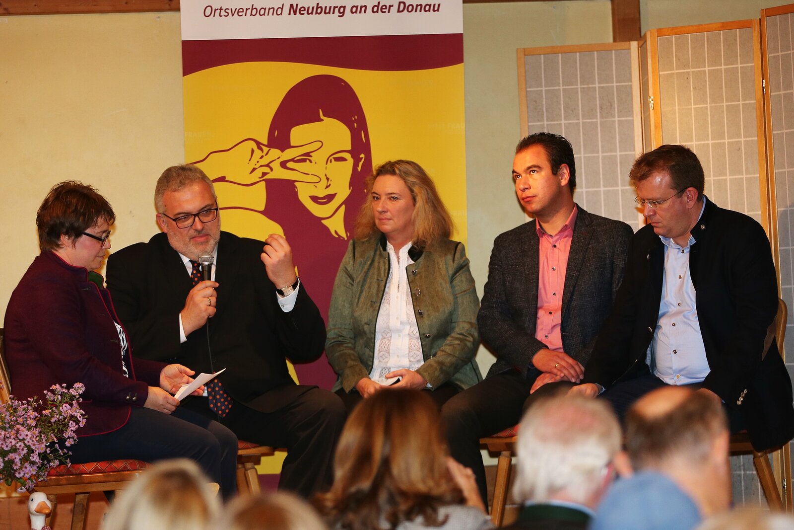 Zum ersten Herbstempfang des FU-Kreisverbandes Neuburg-Schrobenhausen konnte die Kreisvorsitzende Martina Fischer neben den beiden Bundestagsabgeordneten Dr. Reinhard Brandl und Erich Irlstofer sowie den Landtagsabgeordneten Matthias Enghuber auch Staatsministerin Kerstin Schreyer begrüßen. In einer kleinen Diskussionsrunde setzten sich die Politiker mit dem Thema "Frauen in der Politik" auseinander.