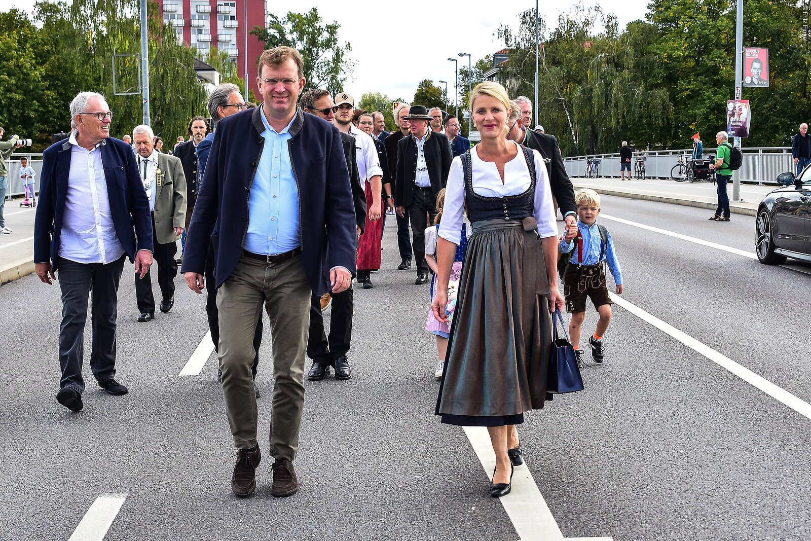Der Bundestagsabgeordnete Reinhard Brandl führte gemeinsam Stefanie Geith, der Frau des Ingolstädter Oberbürgermeisters denn Festzug an.