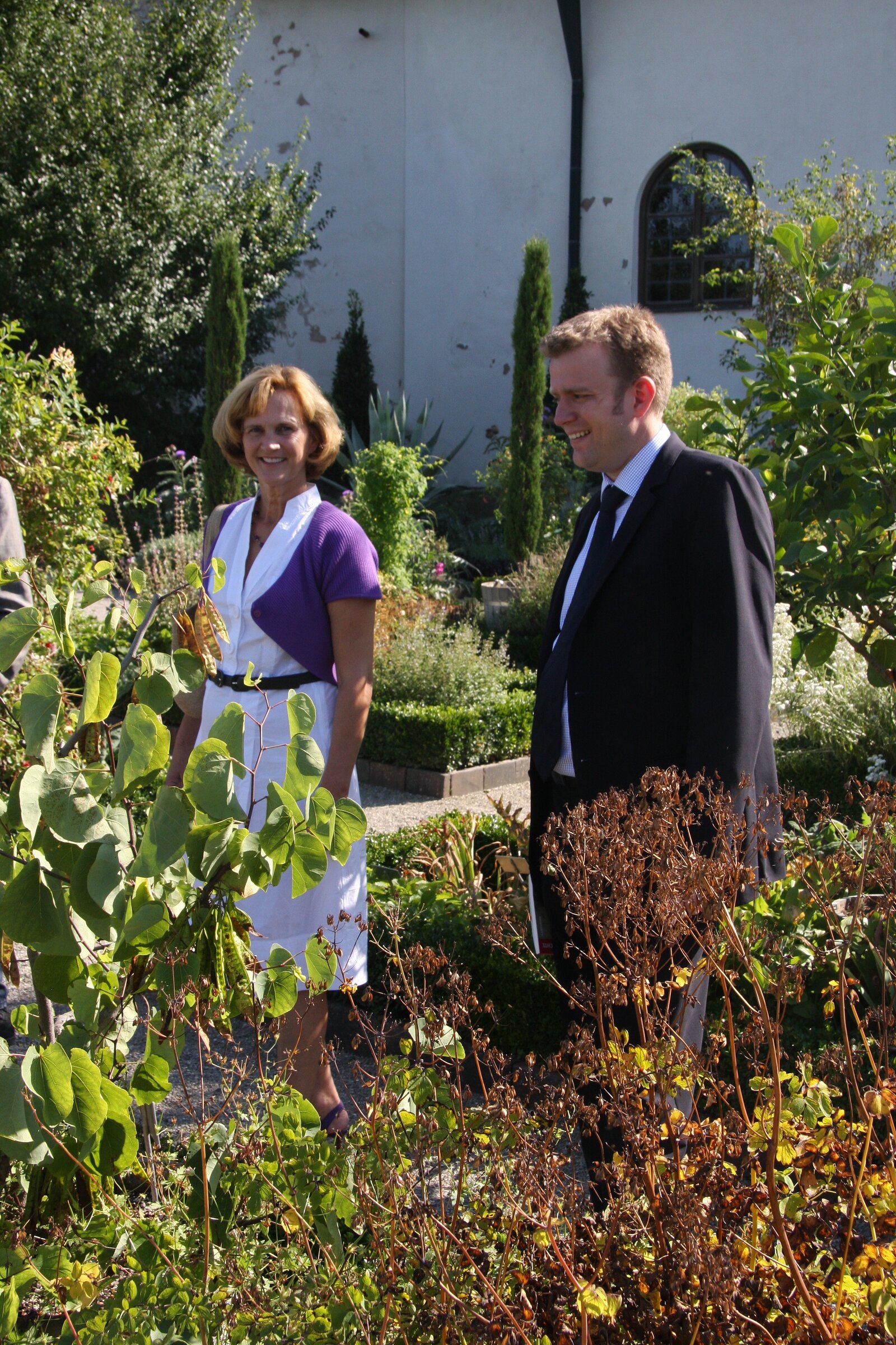 In Begleitung der Gattin des Bayerischen Ministerpräsidenten, Frau Karin Seehofer, besuchte Dr. Reinhard Brandl das Museum des Historischen Vereins Eichstätt auf der Willibaldsburg. Der Vorsitzende des Historischen Vereins, Konservator Albert Günther und der Schatzmeister, Richard Kögler, zeigten den Gästen das mächtige Skelett des Mammuts, das maßstabgetreu nachgebaute Modell des Kastells Pfünz und die kunstvollen Schmiedearbeiten der Römer. Im Ur- und frühgeschichtlichen Museum ließen sich die Gäste die Exponate erklären. Nach dem Rundgang im Museum wurde der Hortus Eystettensis, der Garten der Fürstbischöfe, mit seinen teils exotischen Pflanzen und Sträuchern besichtigt. Der Garten war vor Jahren neu angelegt worden und ist ein Besuchermagnet. Karin Seehofer und Reinhard Brandl dankten dem Historischen Verein für die Erhaltung der Nachlässe, deren Registrierung, und auch dafür, dass die Stücke der Öffentlichkeit zugänglich gemacht werden.