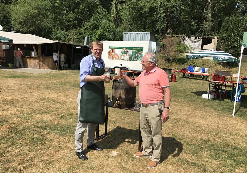 Auf dem Gelände des SB Schutter fand wieder das Sommerfest der HOG Großscheuern statt. Als Schirmherr fungierte in diesem Jahr der örtliche Bundestagsabgeordnete Dr. Reinhard Brandl, der gerne ein Faß Bier anzapfte. Bei herrlichem Sommerwetter waren wieder zahlreiche Gäste gekommen und verbrachten einen gemütlichen Nachmittag bei Blasmusik. Organisator Stefan Groß freute sich über den Besuch des Abgeordneten und bedankte sich für die Übernahme der Schirmherrschaft.