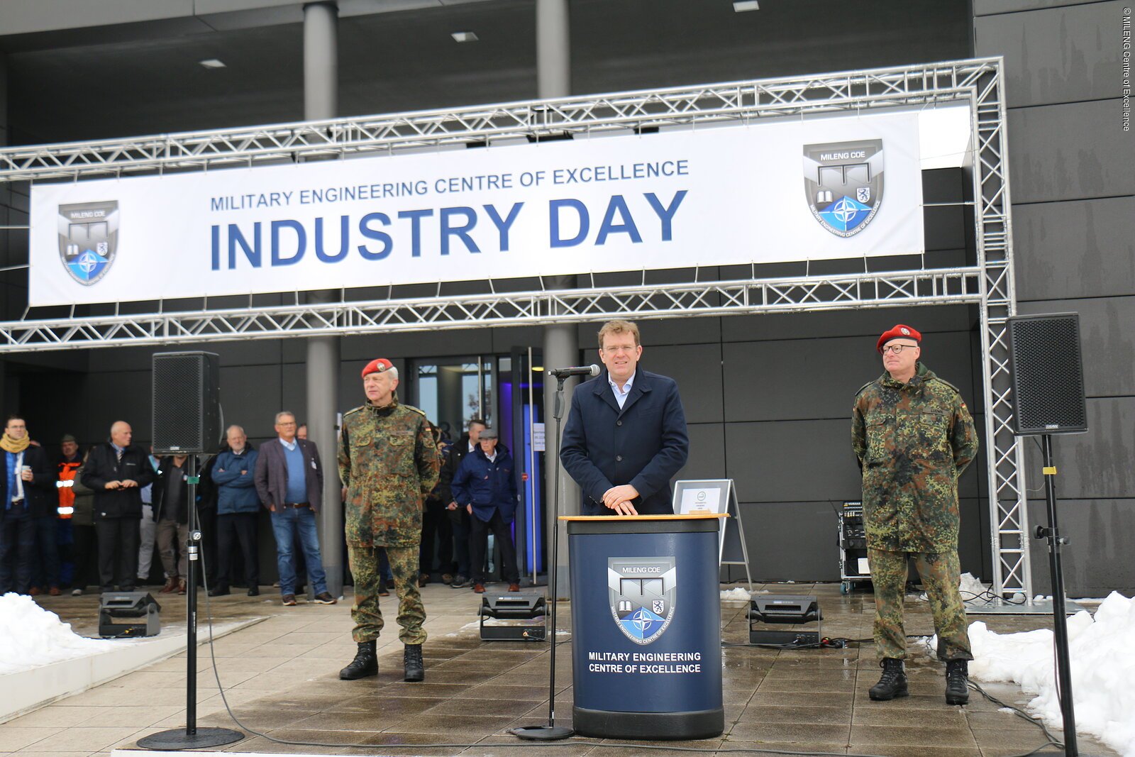 Das Military Engineering Centre of Excellence (MilEng CoE) hat auch in diesem Jahr den Industry Day ausgerichtet. Mit 91 Ausstellern in zwei Hallen und dem Außenbereich der Pionierkaserne auf der Schanz in Ingolstadt war es der bisher größte Industrietag der Pioniere.