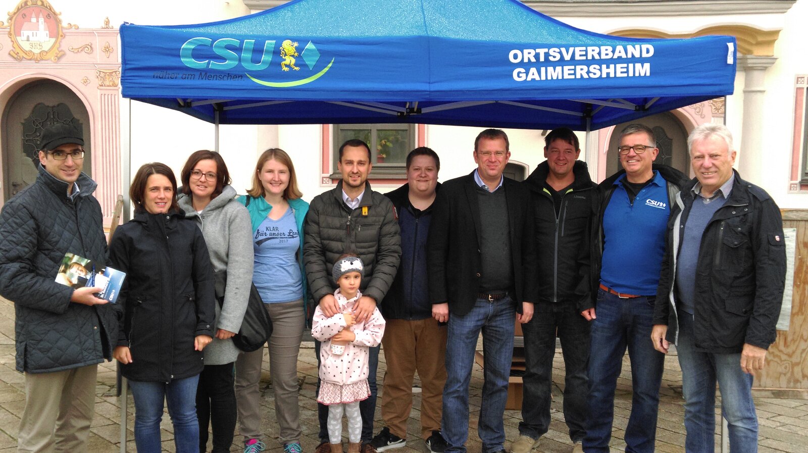 Bereits am frühen Samstag Morgen lud der Ortsverband Gaimersheim die Bürgerinnen und Bürger zum Gespräch mit MdB Dr. Reinhard Brandl am Marktplatz ein. Ortsvorsitzebnder Florian Kraußer freute sich sehr, dass viele Mitglieder der Ortsvorstandschaft gekommen waren und damit ihre Unterstützung für Reinhard Brandl zum Ausdruck brachten. Brandl konnte mit vielen Besuchern des Standes Gespräche führen und freute sich über viele bekannte Gesichter.
