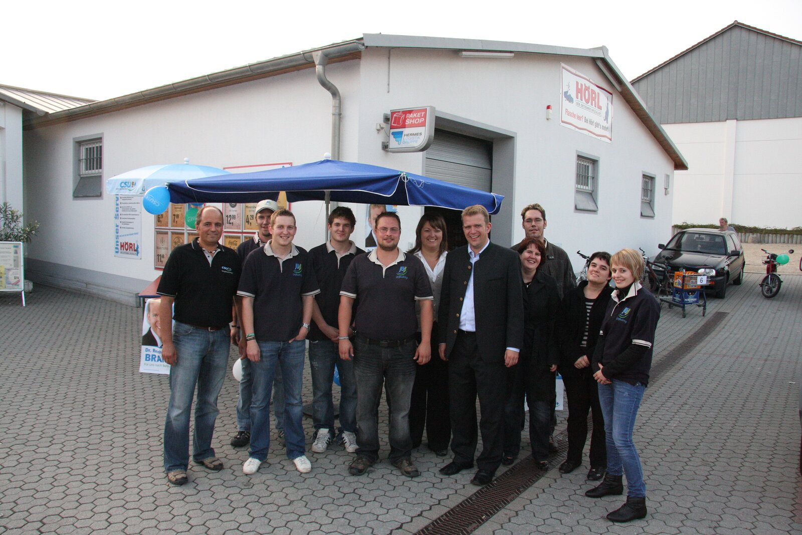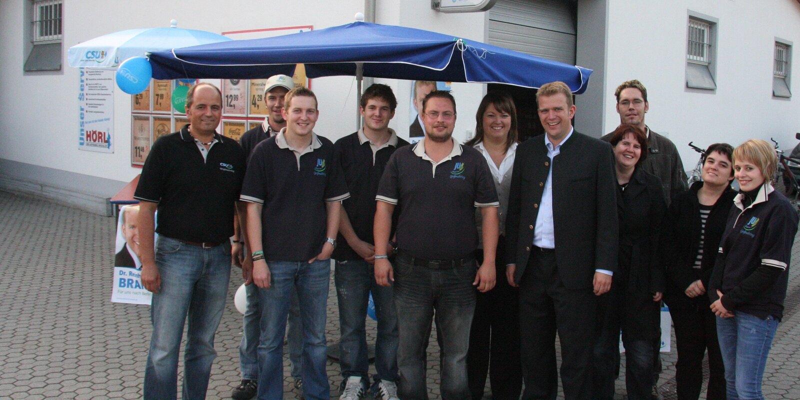 Eine große Zahl von Großmehringer JU-lern erwartete Bundestagskandidat Dr. Reinhard Brandl am Infostand in Großmehring. Reinhard Brandl konnte bei seinem 4. Besuch in der Gemeinde Großmehring zahlreiche Bürgerinnen und Bürger begrüßen und Fragen aus Feldern der Politik beantworten.
