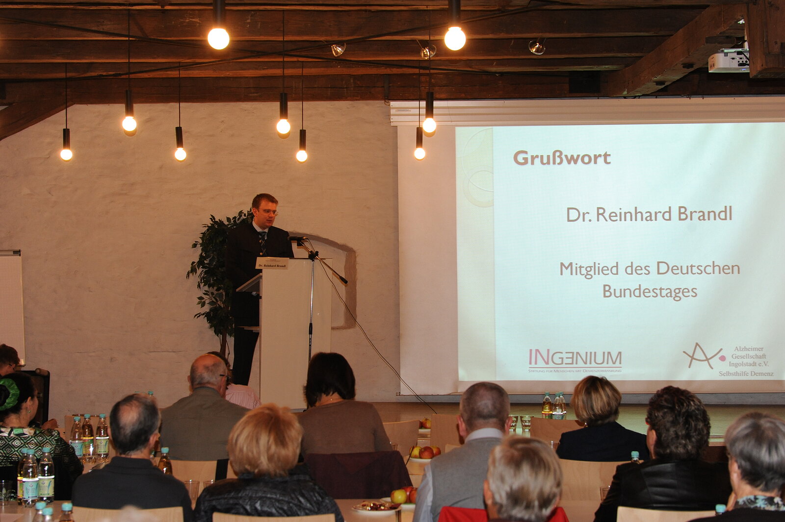 Anläßlich des 10-jährigen Bestehens der Ingenium Stiftung fand gemeinsam mit der Alzheimer Gesellschaft eine Fachtagung zum Thema "Welche Bedeutung haben Bewegung und Aktivität bei Alzheimer?" statt. Gerne überbrachte MdB Dr. Reinhard Brandl seine Glückwünsche zum Jubiläum persönlich und sprach in seinem Grußwort der Stifterfamilie Greil seinen hohen Respekt für das Engagement für die an Alzheimer erkrankten Menschen aus.